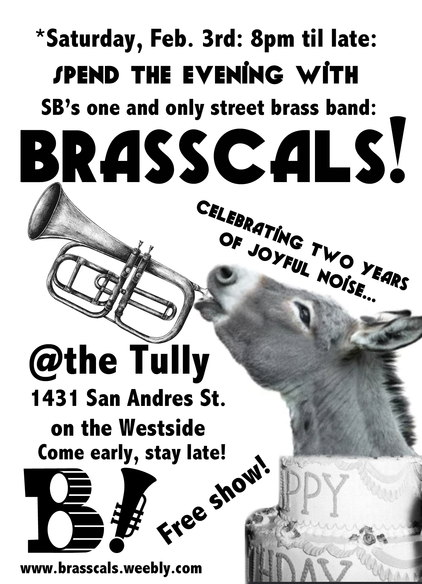 It’s a Birthday Bash for Brasscals (2 years young) and you’re invited! Show kicks off around 8pm and we will play funk, jazz, pop, Latin (and more)… till the trumpet player’s lips go blue! The Tully is a great bar on the Westside ~ come celebrate Street Brass Band madness with us!