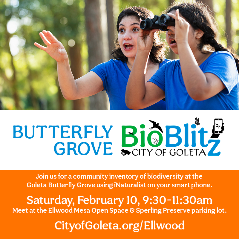 This Bioblitz will be used as an informal baseline survey of local biodiversity of the Goleta Butterfly Grove before the City begins its enhancement and restoration project. We can conduct these surveys in different seasons this first year and then again after several years to track changes in plants, birds, insects and more!
