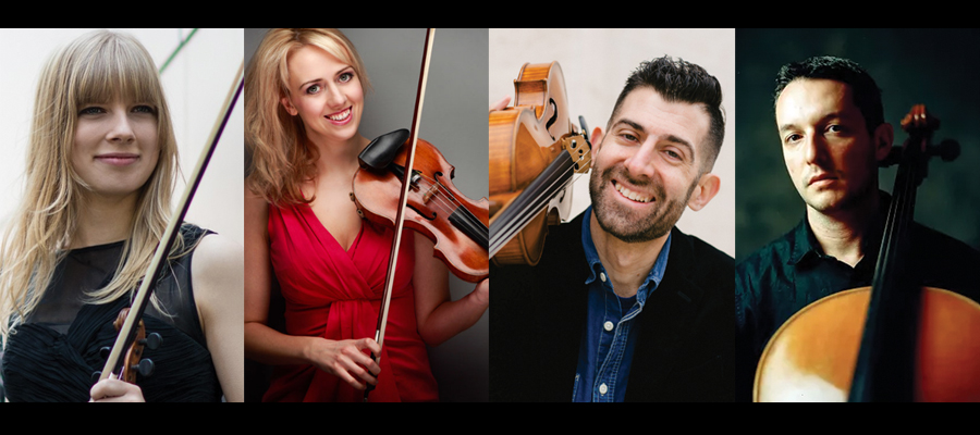 Artists performing are Violinist Luanne Homzy, Violinist Kerenza Peacock, Violist Jonah Sirota, and Cellist Evgeny Tonkha.