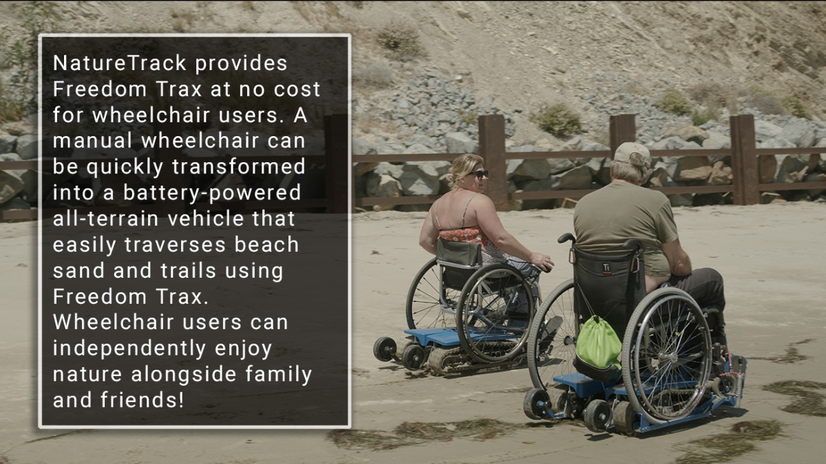 NatureTrack expanded its mission of connecting kids to nature and is now connecting people who use wheelchairs of all ages to get out into nature using Freedom Trax. This device quickly changes a manual wheelchair into a battery powered, all-terrain vehicle which can easily traverse sand and trails. Now NatureTrack wheelchair users of any age can enjoy natural areas previously inaccessible to them using Trax. https://naturetrack.org. NatureTrack is expanding its reach up to San Luis Obispo and down to Ventura County with the Trax program. Thanks go to the grantors including: UCSB’s Coastal Fund, California State Coastal Conservancy, Parks California ‘Route to Parks’ grant and the Coastal Resource Enhancement Fund. And now, the California Access for All grant to expand the Freedom Tracks program up to North SB County.