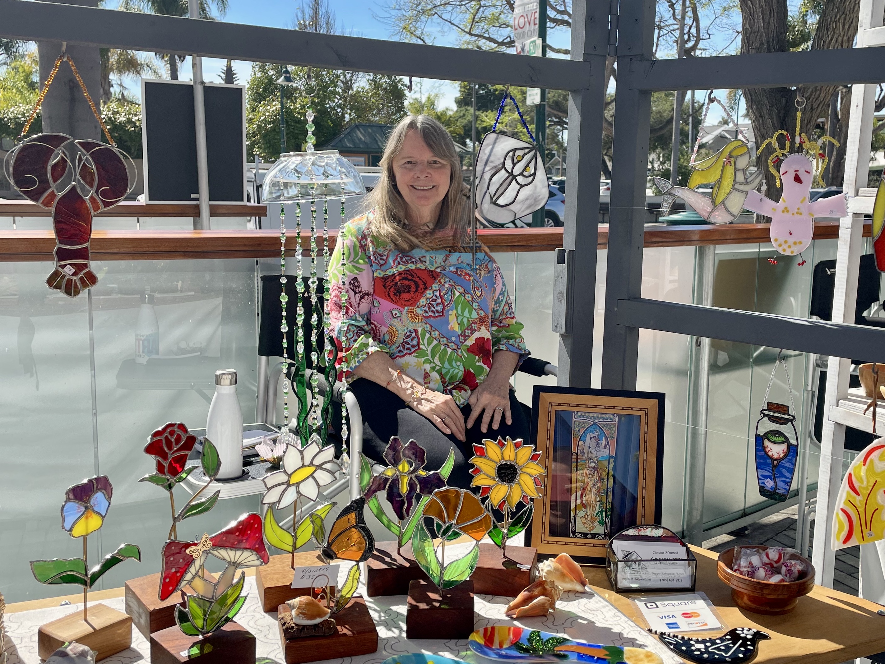 The featured artist is local glass artist Christine Monteath. Monteaths’ glass artwork incudes creations in stained glass and fusing inspired by nature and the dance between colored glass and sunlight.
