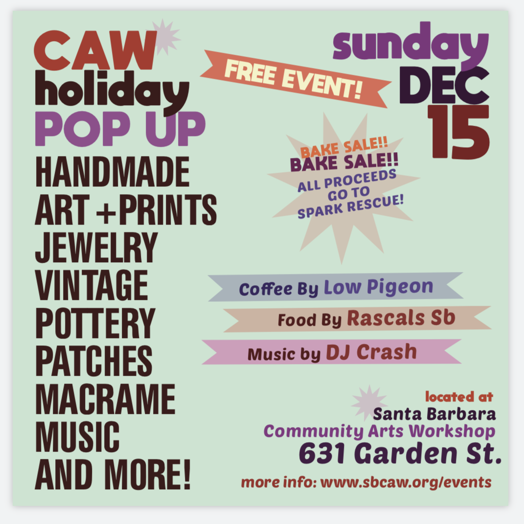 Join us for a day of community gathering with over 30 artists, designers, collectors sharing unique creations and delights! The free family event including food and beverage vendors, kid’s art corner, music, and some art demos. We will also be hosting a bake sale to benefit local non-profit Spark Rescue! Come meet your local roller derby team at the Brawlin Betties Hot Chocolate booth and more!