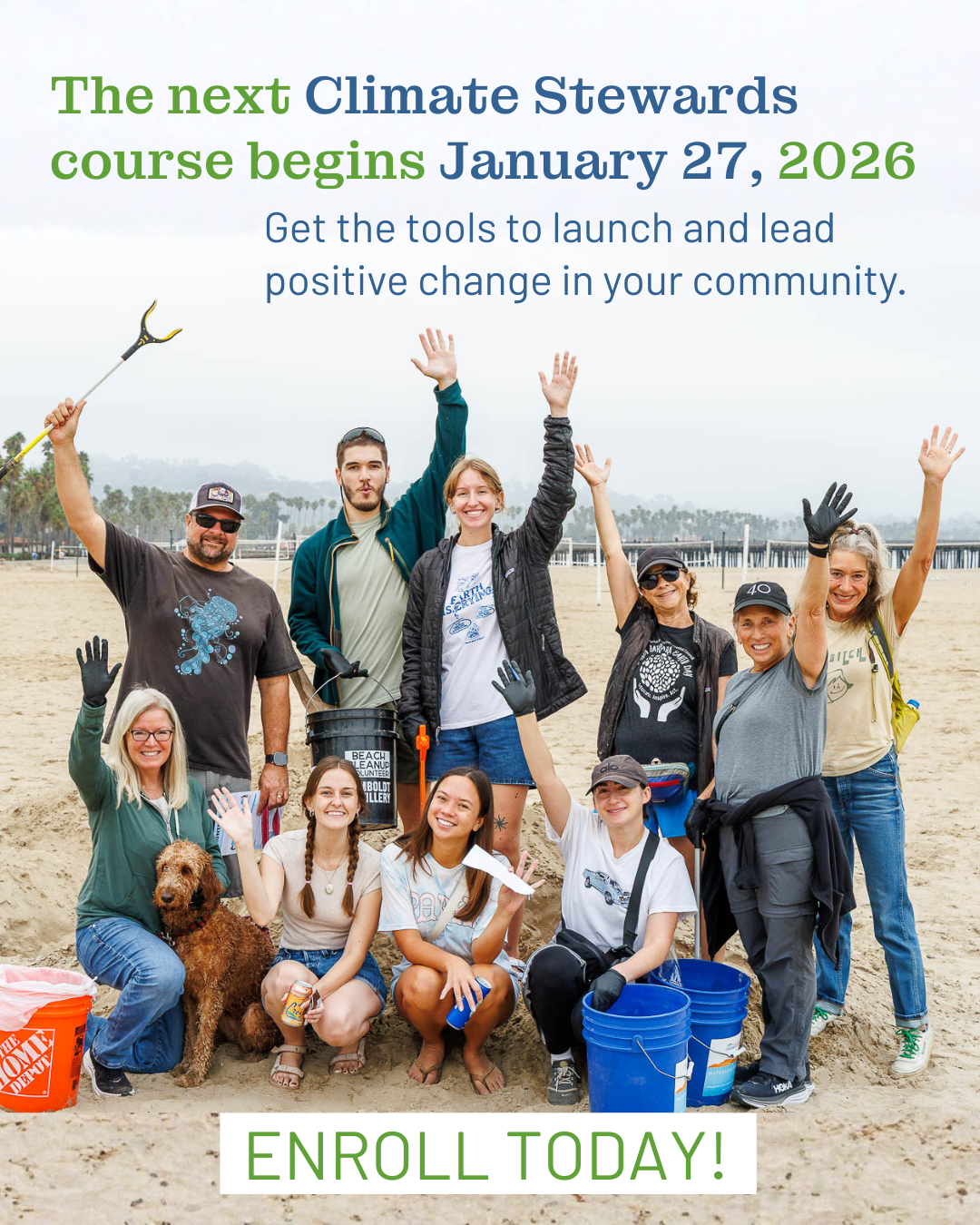 Community Environmental Council’s Climate Stewards certification course is offered in September, January, and April. The winter 2026 cohort will begin on Tuesday, January 27 and end on Tuesday, March 17. Classes are held on Tuesday nights from 6:30–8:30 p.m. online via Zoom, with a few in-person field trips.