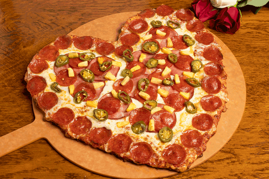 Surprise her with Rusty’s Heart-Shaped Pizza (created from a large pizza). It’s the perfect blend of flavor and affection