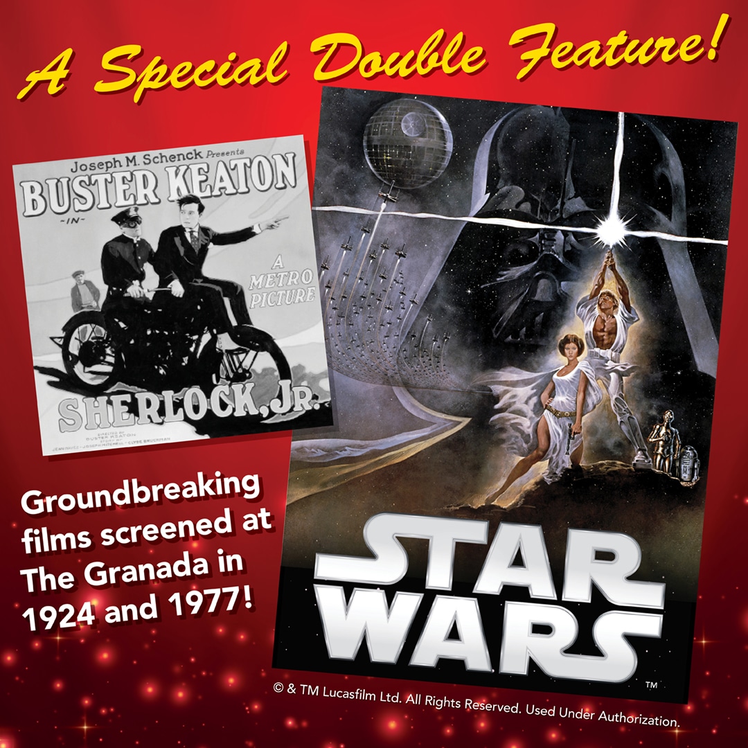 Star Wars: A New Hope was first presented at the Granada on September 16, 1977, and ran for 15 weeks! This epic space opera film was written and directed by George Lucas. It was the first film released in the Star Wars film series and the fourth chronological chapter of the Skywalker saga. It received numerous awards at the Academy Awards, BAFTA Awards, and Saturn Awards, among others. The Granada is thrilled to return this fully restored 4K version to its big screen.
