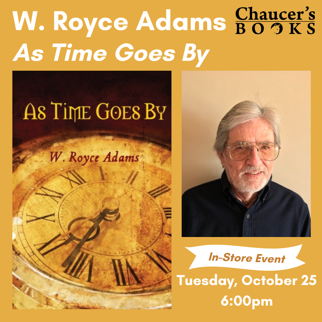 Chaucer’s Books ( 3321 State Street, 805-682-6787) will host SBCC English professor emeritus W. Royce Adams for a book talk and signing of his novel AS TIME GOES BY on Tuesday, October 25 at 6 p.m.