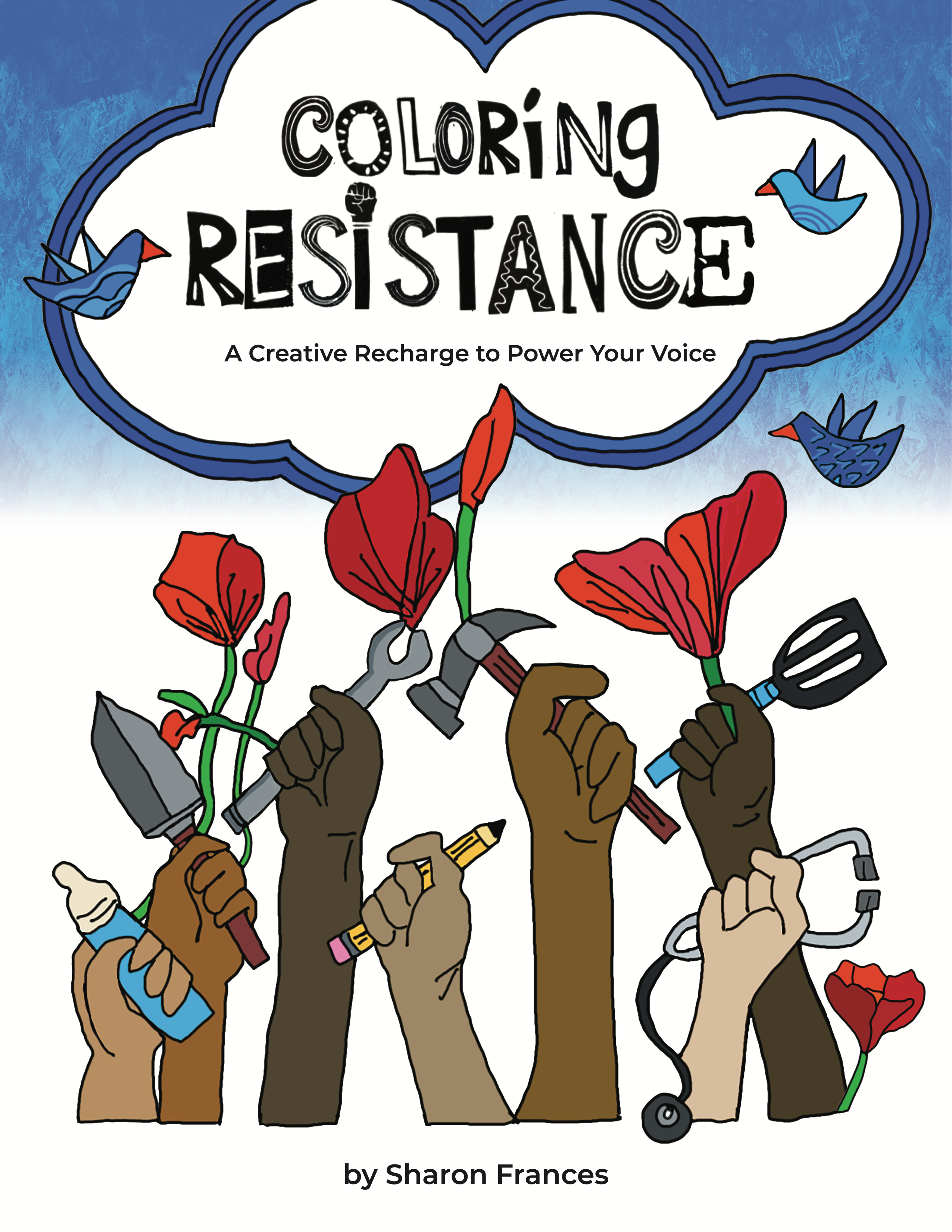 We are in a long, tough social justice fight to end oppression and secure liberation for all people and the planet. As activists, we need rest and inspiration so we can keep going.   Enjoy 50 coloring pages to recharge and power your voice. Artist Sharon Frances has adapted these illustrations from her original linocut block prints. Each coloring page includes an empowering hand-lettered quote and imagery-rich images.  Themes include: activism, bodily autonomy, the environment, global liberation, human rights, immigration, labor, mental health, Palestine, queer joy, solidarity, and fighting authoritarianism, colonialism, ICE & patriarchy.- Courtesy of the author.