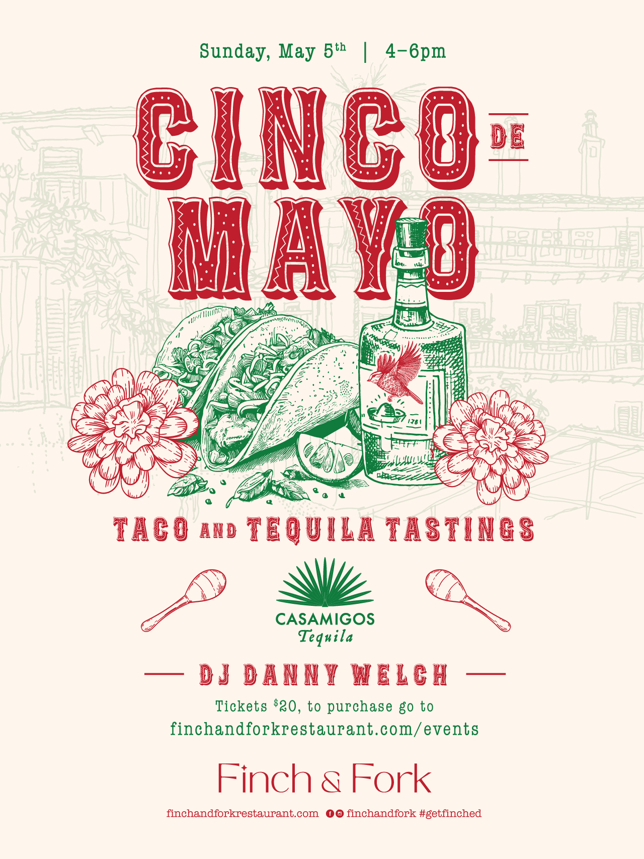 Celebrate Cinco De Mayo with Finch & Fork on the Canary Hotel Rooftop! Enjoy Tacos & Tequila tasting with Casamigos and music from DJ Danny Welch. Don’t miss out on this exciting in-person event with the best rooftop views in town.