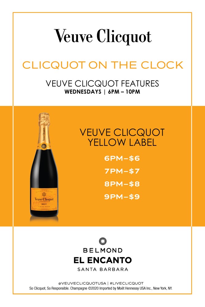 Santa Barbara’s charming Belmond El Encanto welcomes guests and locals to the hotel’s new Clicquot on the Clock series taking place Wednesdays from 6:00 PM – 10:00 PM in the hotel’s gorgeous Riviera Bar.