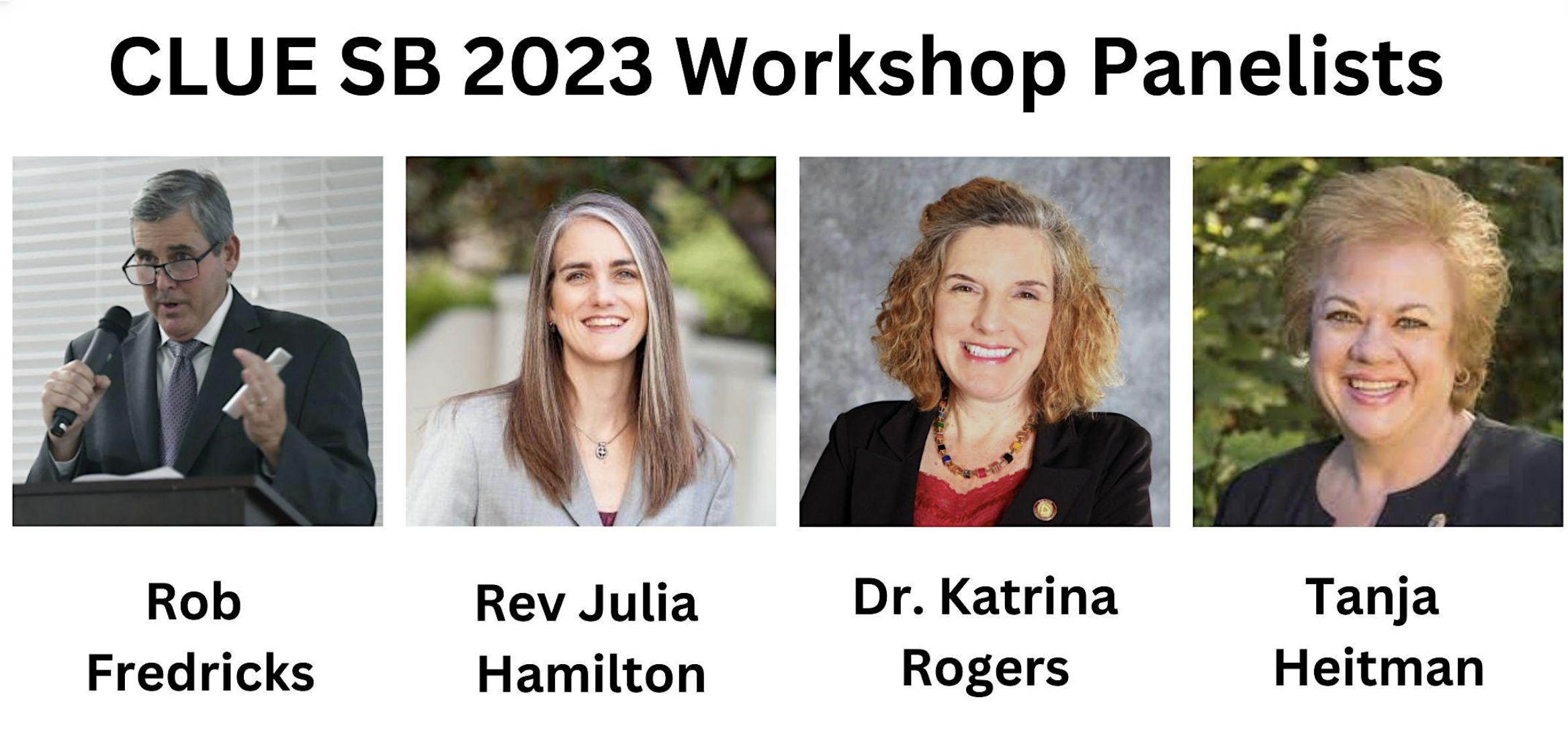Choose one of four break-out workgroups; meet with experts, stakeholders, and CLUE members to discuss and help define CLUE SB’s justice advocacy goals for the coming year.