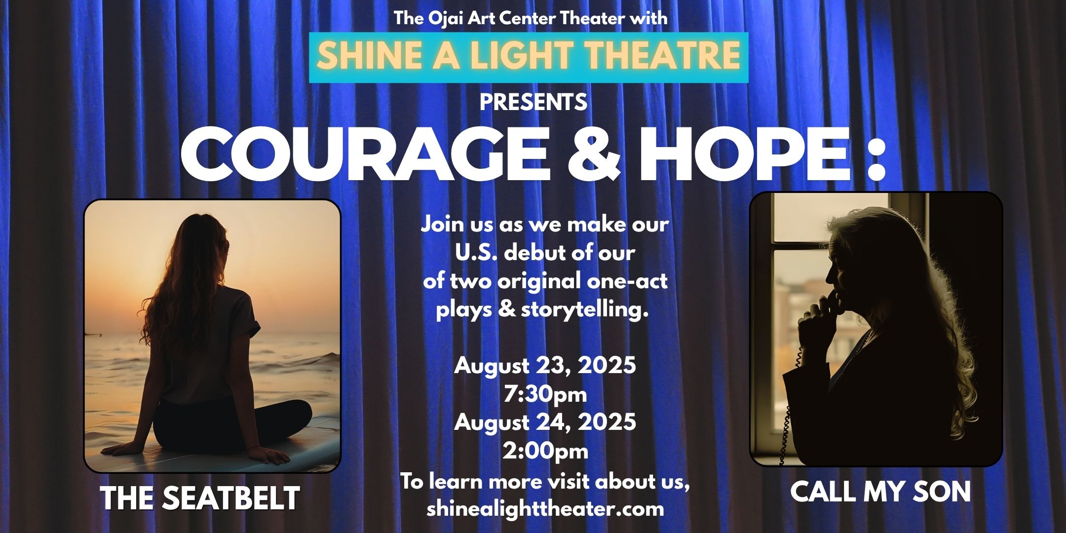 The Ojai Arts Center Theater with Shine A Light Theatre, Inc presents: Two One-Acts with Live Storytelling. Join us for an exciting and heartfelt night of live theater and personal storytelling that explores mental health, caregiving, and the human capacity for resilience. This special event features two original one-act plays alongside a real-life storytelling performance.