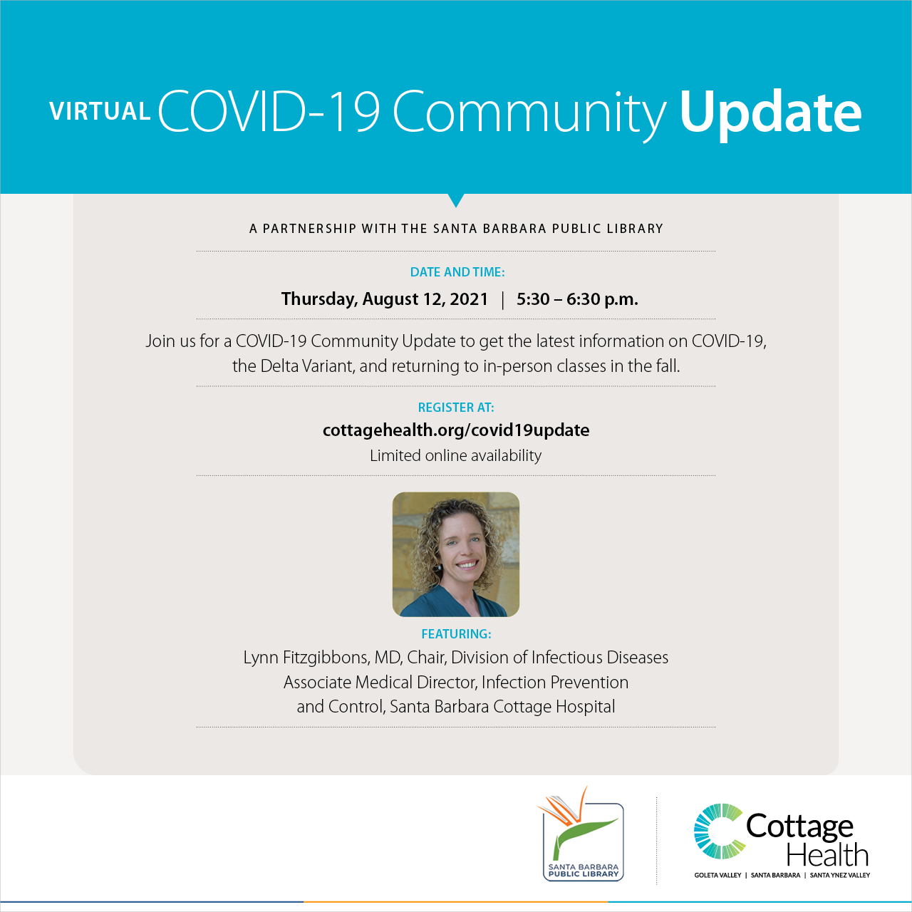 SANTA BARBARA –Dr. Lynn Fitzgibbons, an infectious disease expert at Santa Barbara Cottage Hospital, will present a COVID-19 Community Update with the latest information on the Delta Variant and its impact on returning to in-person classes in the fall. Following her presentation, Dr. Fitzgibbons will answer questions from attendees.