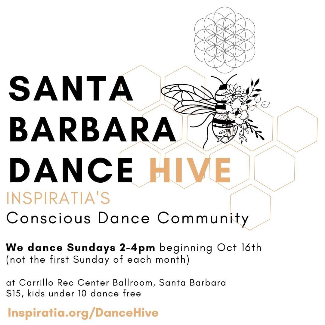 We meet at the Carrillo Recreation Center Ballroom in Santa Barbara from 2pm-4pm. $15 entry fee. Children under 10 dance free. Financial support available – email info@inspiratia.org