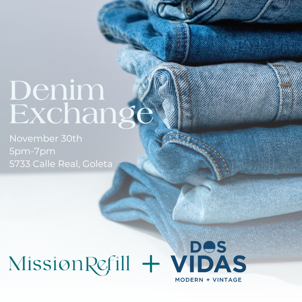 Be kind to the earth while restocking your wardrobe. Bring an old pair of denim, cotton preferred, and get 20% off a curated second-hand pair of pants from Dos Vidas*. Plus shop from an extended selection of clothing & shoes. Enjoy a glass of wine and shop Mission Refill goods for the holidays.