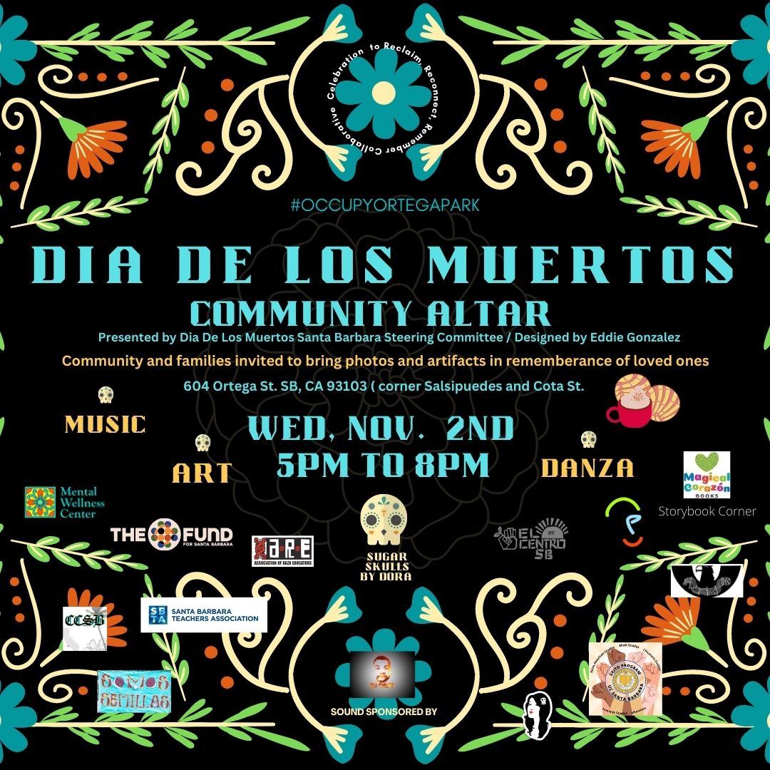 This year our event will be held at Ortega Park from 5p-8p on Wednesday, November 2, 2022. As the largest family and community-centered and collaborative Dia de Los Muertos event in the city, Dia de Los Muertos 2022 can offer you a unique opportunity to connect with the Santa Barbara community.