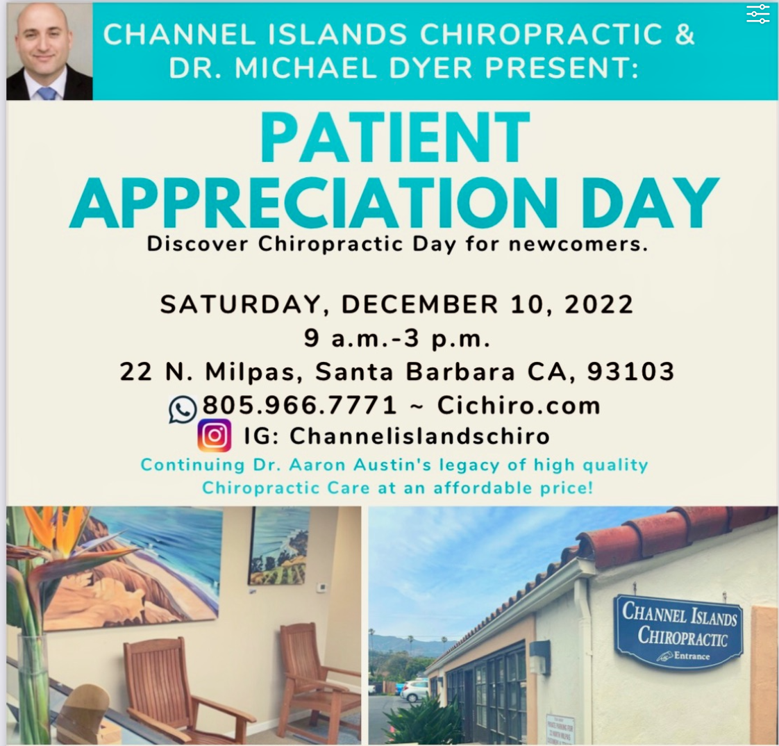 Dr. Michael Dyer is hosting Patient Appreciation Day at Channel Islands Chiropractic office.