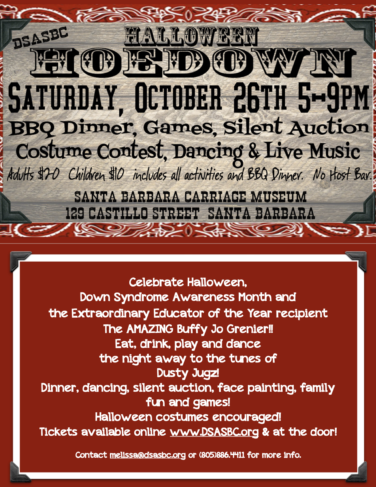 Join the us for the Down Syndrome Association of Santa Barbara County’s 13th Annual Halloween Hoedown.