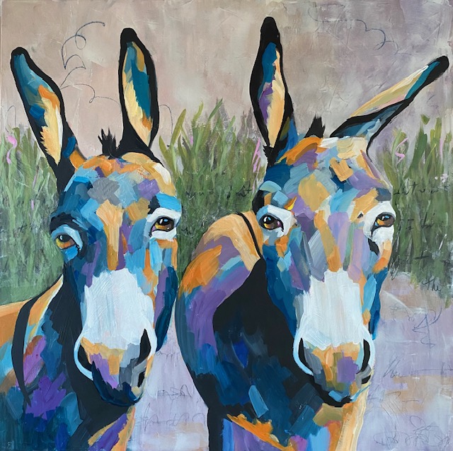 Debbi’s artistry takes the viewer on a pleasant journey with vibrant color, beautiful scenery, and adorable farm animals. Debbi, a passionate artist whose heart is deeply connected to the rural landscape that embraces her home, finds endless inspiration from the farm animals that live close by. With every brushstroke she captures the spirited personalities of cows, chickens, horses, and donkeys.