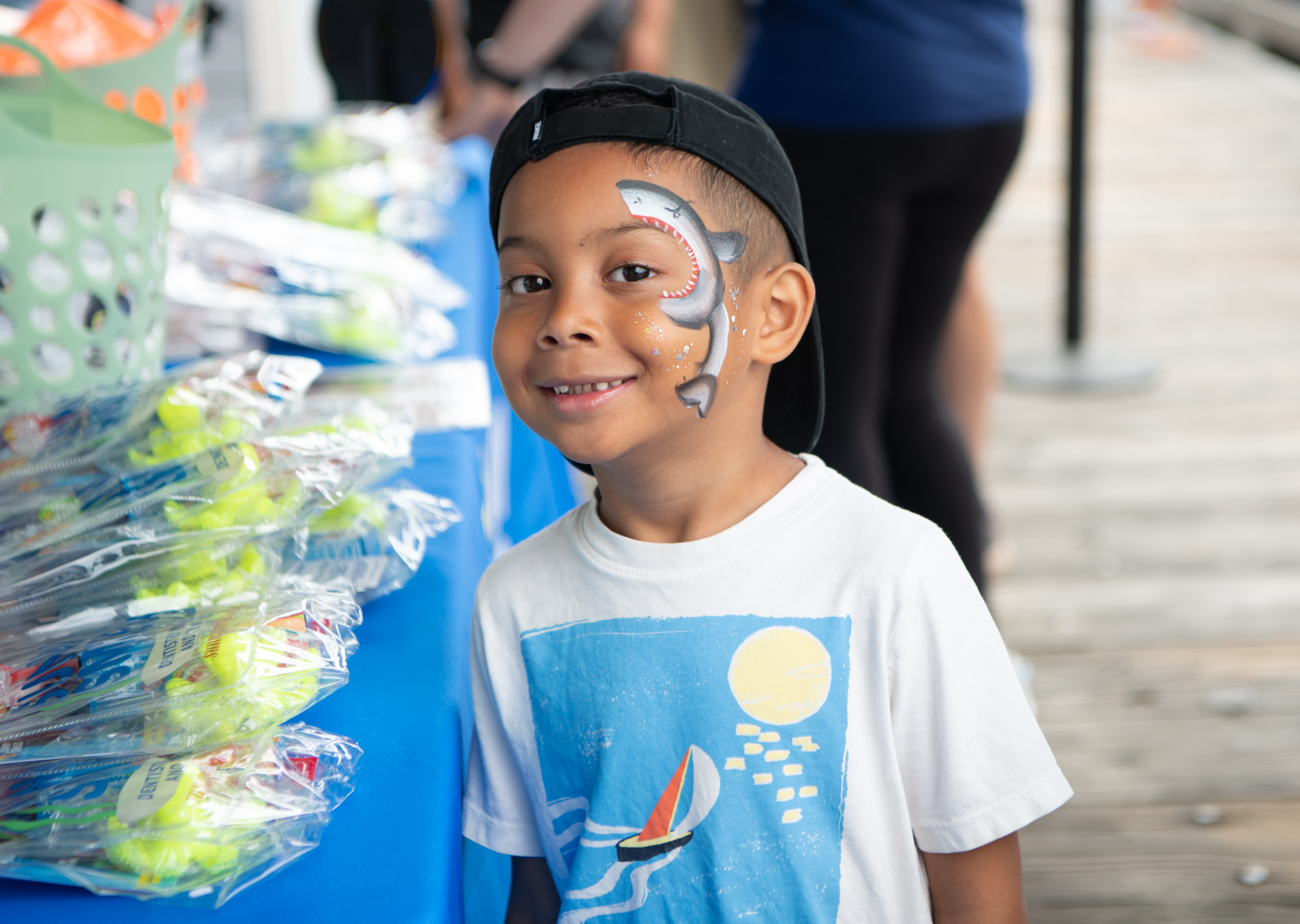 Enjoy complimentary facepainting and temporary tattoos for children at the Sea Center on Stearns Wharf courtesy of Sunny Smiles Dentistry, the Dentist to the Sharks!