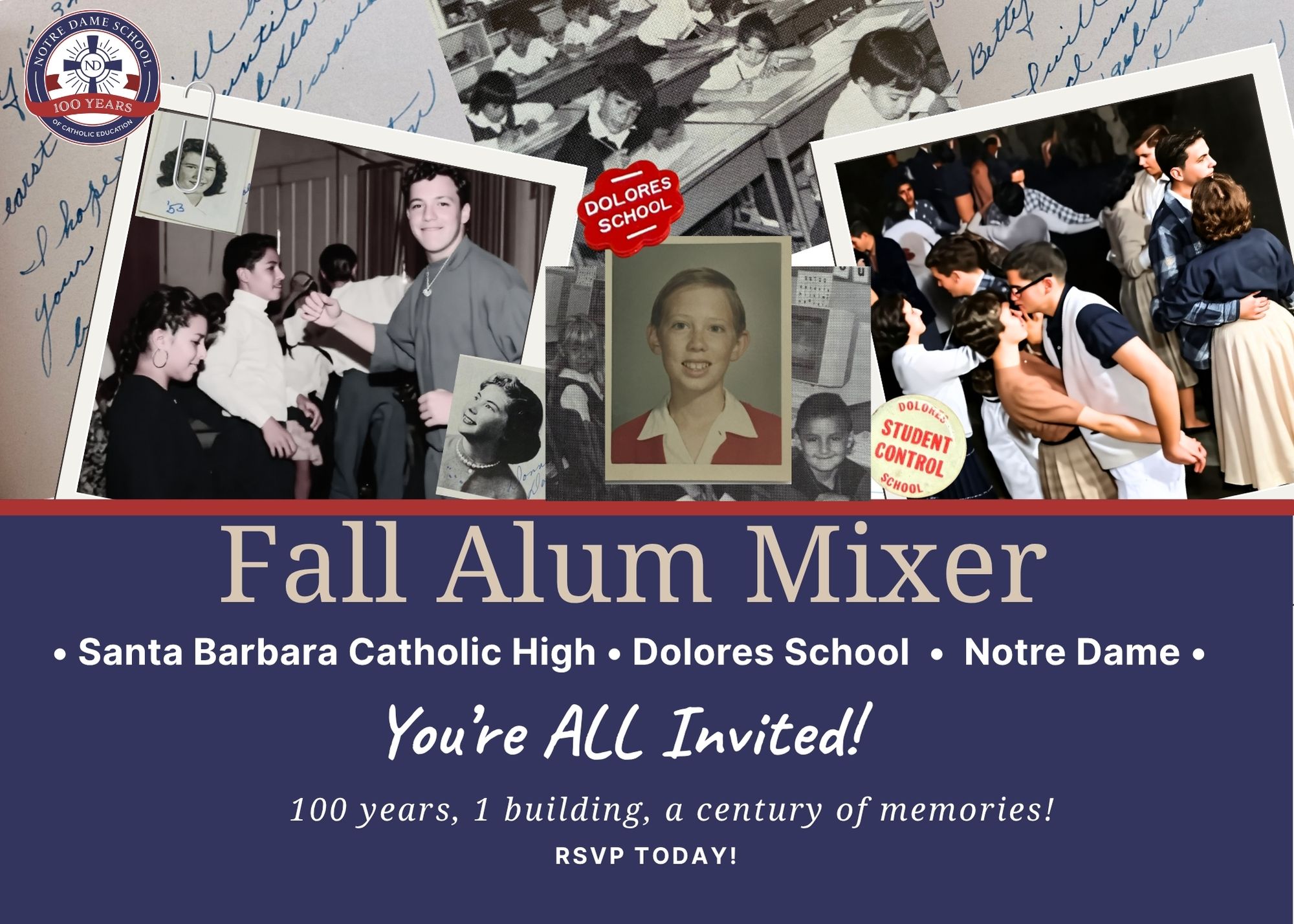 Join us on November 7, 2025 ~ 6:30 p.m. to 8:30 p.m.~ 33 E. Micheltorena St., Santa Barbara. Don’t miss our Alumni Mixer— Enjoy an evening of music, appetizers, an open bar, and school tours as you reconnect with classmates and celebrate our legacy and our 100 years of memories together!