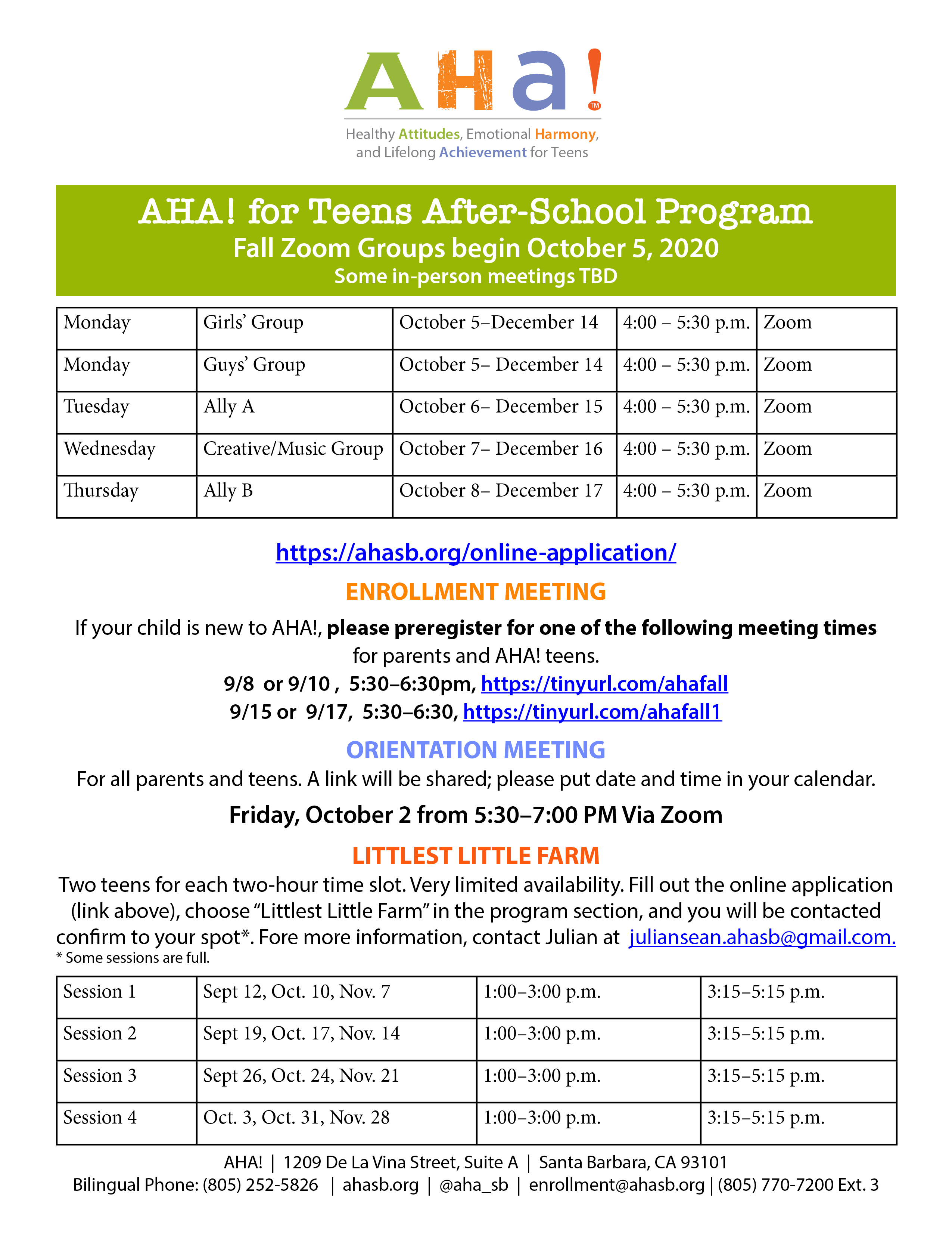 Our programs are a fun place for teens to connect and make friends while developing social emotional and leadership skills. Your teen car register by filling out an application at: https://ahasb.org/