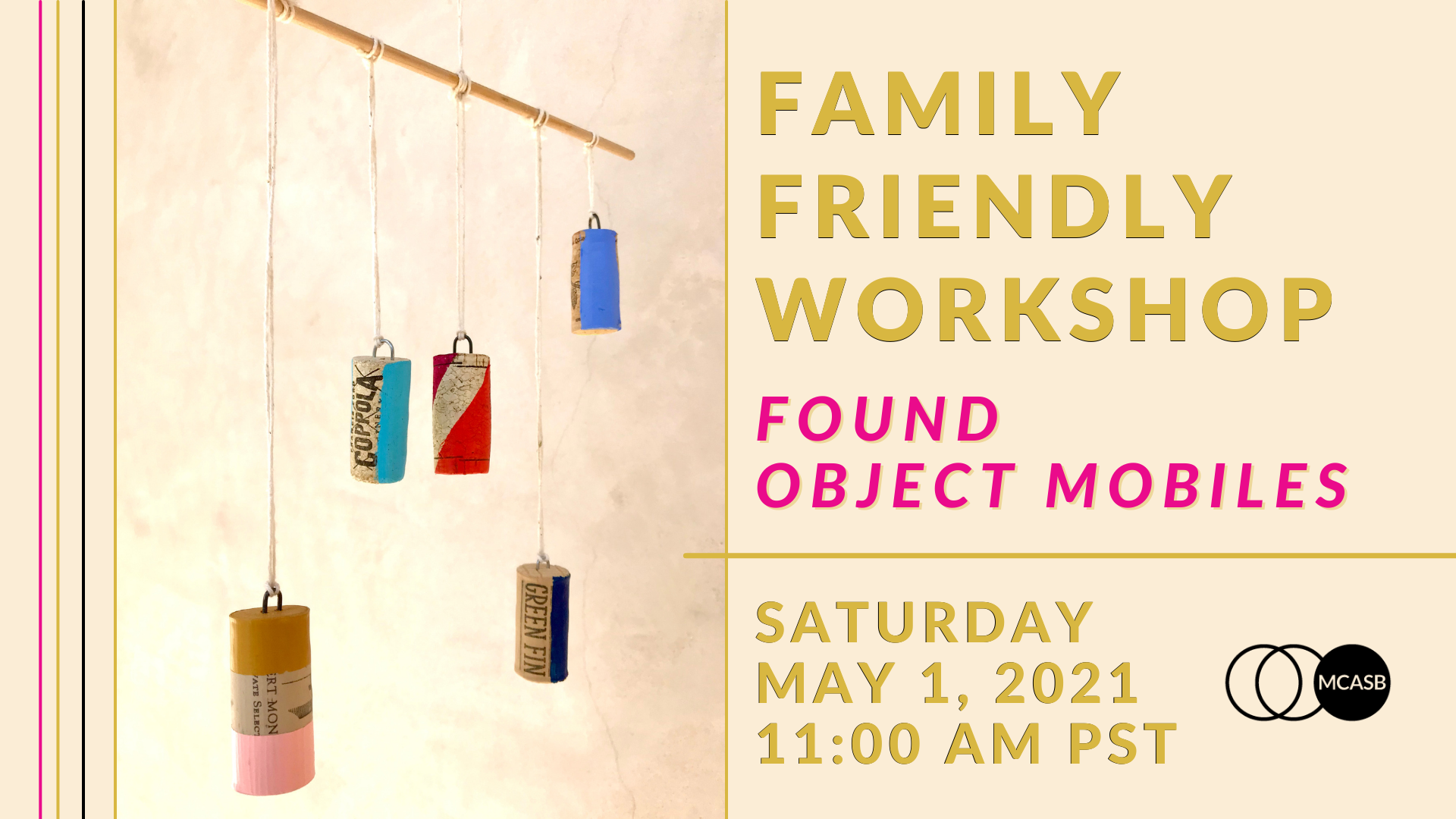 Join Museum of Contemporary Art Santa Barbara for a Found Object Mobiles Workshop on Saturday, May 1st at 11:00 AM PST! Learn how to create hanging mobiles using repurposed objects from around your home or items found outdoors. This workshop is a great way to find beauty in overlooked, everyday resources. Gather your items beforehand, and together we will assemble our mobiles during the tutorial, though you will likely need some extra time after the workshop to balance your mobiles. We will explore how various materials can be used to create mobiles, and demonstrate how to construct, tie, and balance a hanging mobile. This event is free to all and we encourage people of all ages to attend. See you there!