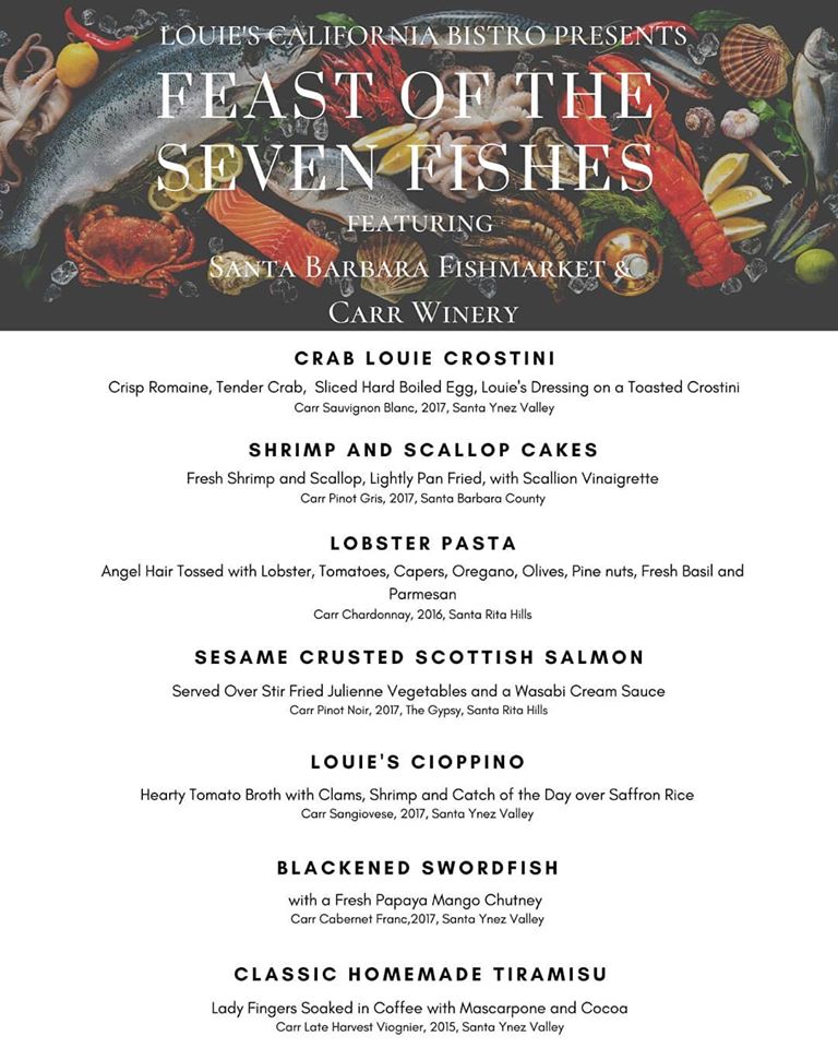 Featuring Carr wines and the Santa Barbara Fish Market, the seven-course food and wine pairing will be an unforgettable culinary experience with plenty of holiday cheer. Check out the full menu for the night at www.louiescabistro.com.