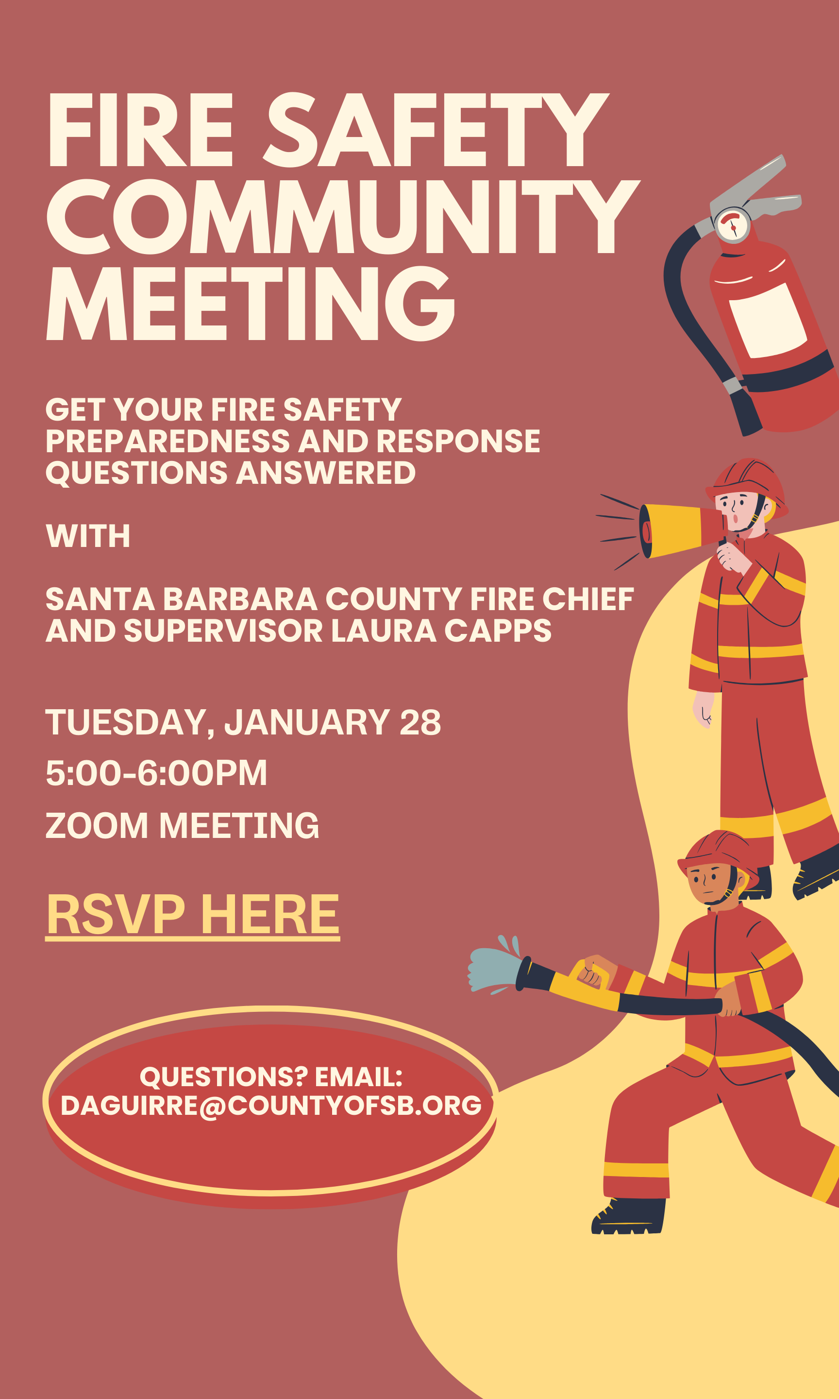 Join Supervisor Laura Capps and Santa Barbara County Fire Chief Mark Hartwig for a community zoom meeting on fire safety.