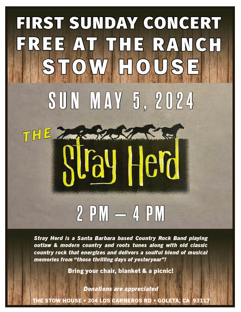 Grab your cowboy hat and put on your best dancing boots, it’s time for Stray Herd! Join the Goleta Valley Historical Society as we welcome them once again to the Stow House lawn!