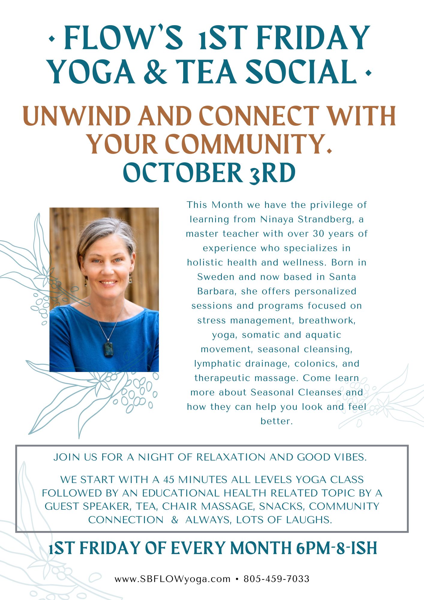 Flow’s 1st Friday Yoga Tea Social- Special Guest, Ninaya Tomson