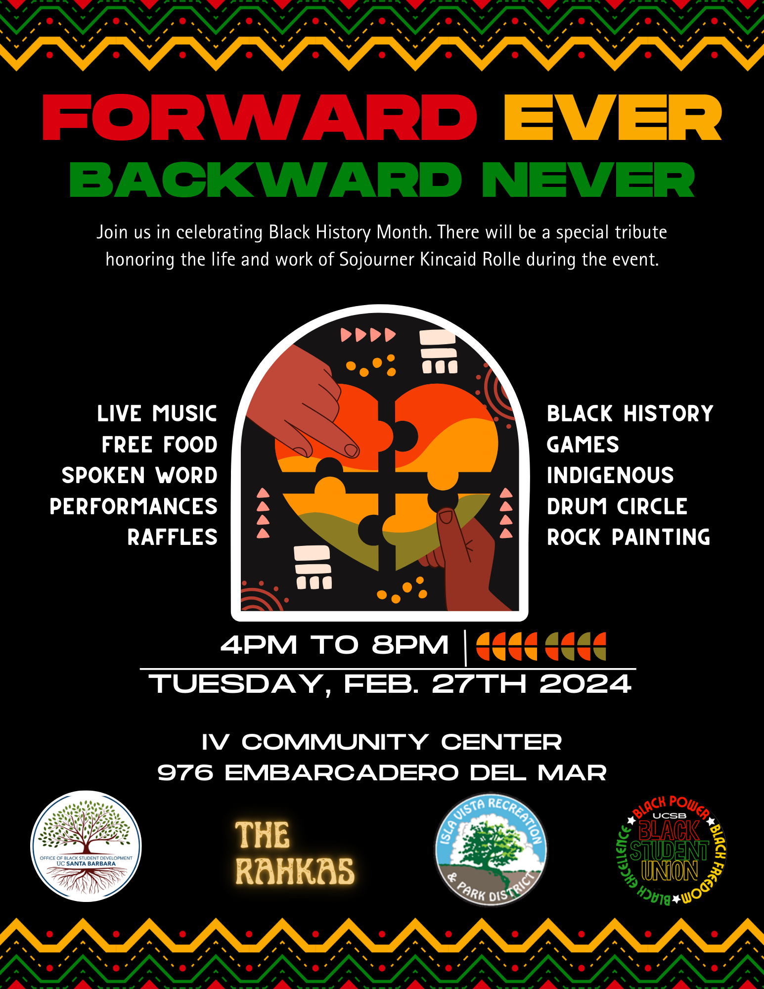 This year’s event will proudly feature a special tribute honoring the life and work of Black poet Sojourner Kincaid Rolle with a poetry program hosted by Sade Champagne, live music from Alla McKeon and the the Rahkas, live DJ set, children’s book reading by Betty K. Bynum and Joshua B. Drummond, indigenous drum circle, rock painting, and a closing ceremony performance lead by local Chumash group Tolteka Izkalot.