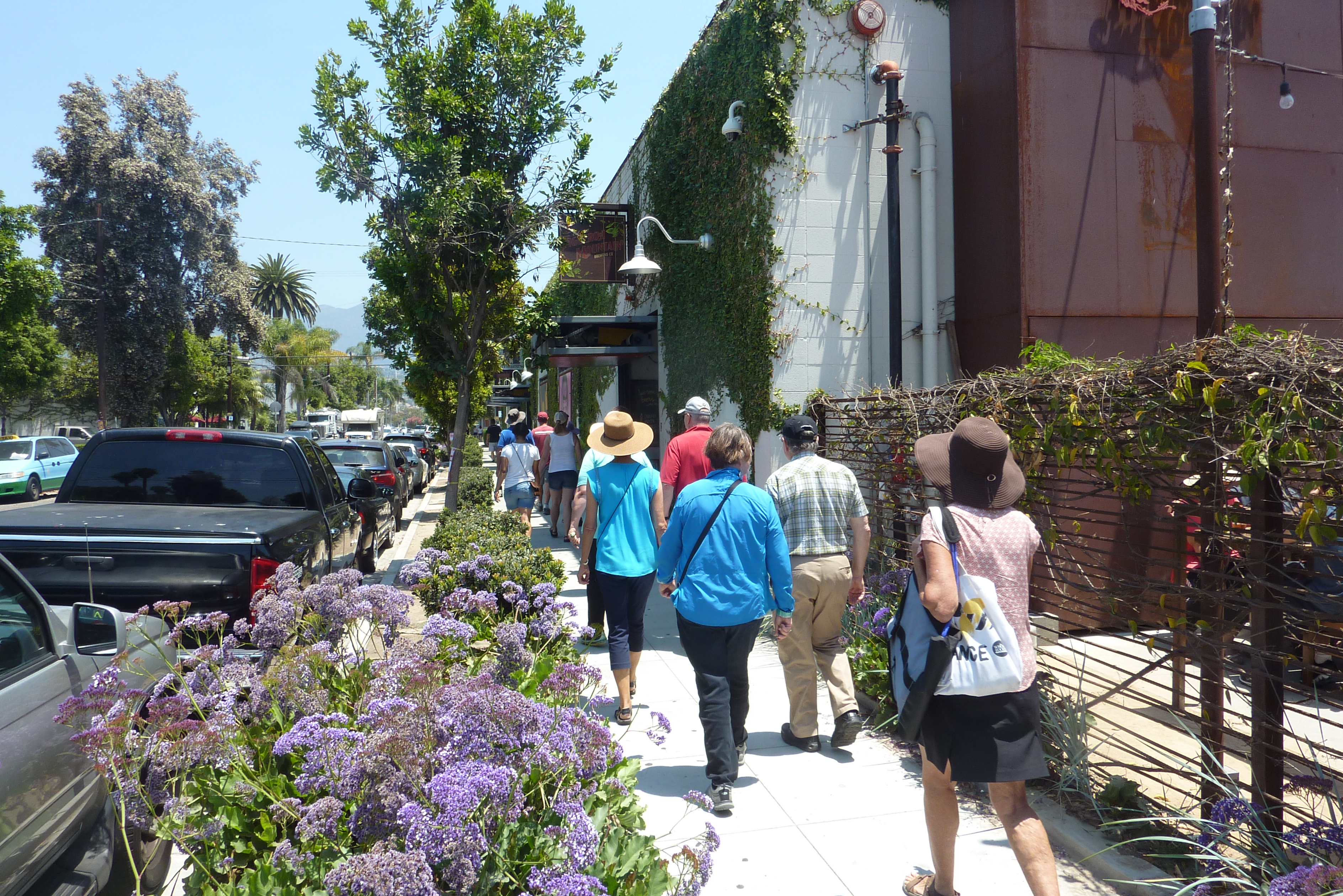 Explore the history of Santa Barbara’s converted warehouse district while familiarizing yourself with the numerous wine tasting rooms, brew pubs, and restaurants congregated in the 10 square block area. The 90 minute tour with 12 stops of interest – including a visit with a local artist – will cover the history of the prestigious Hotel Californian, Lark Restaurant, Lockheed Aircraft, Bekins and Weber Bakery buildings, and McConnell’s Ice Cream, etc. Understand how the Funk Zone has transitioned over time and what lies ahead. A portfolio of nearly 50 old 11 x 17 photos helps place you back in time. At the end of the tour you’ll get a chance to win a free McConnell’s ice cream and receive a copy of the Funk Zone map showing over 60 restaurants, brew pubs, wineries, and art galleries.