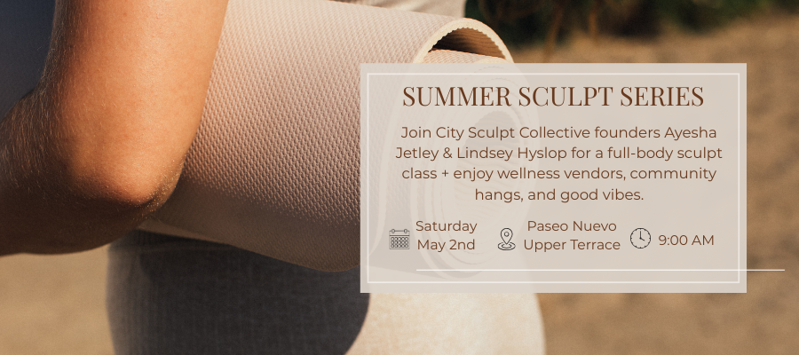 Join City Sculpt Collective founders Ayesha Jetley & Lindsey Hyslop for a feel-good, full-body sculpt session on the Paseo Nuevo Upper Terrace followed by wellness vendors, community hangs, and all the good energy.