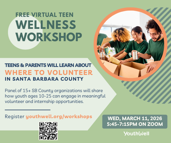 Join YouthWell for a free virtual workshop designed to help students explore meaningful volunteer, internship, and leadership opportunities across Santa Barbara County.