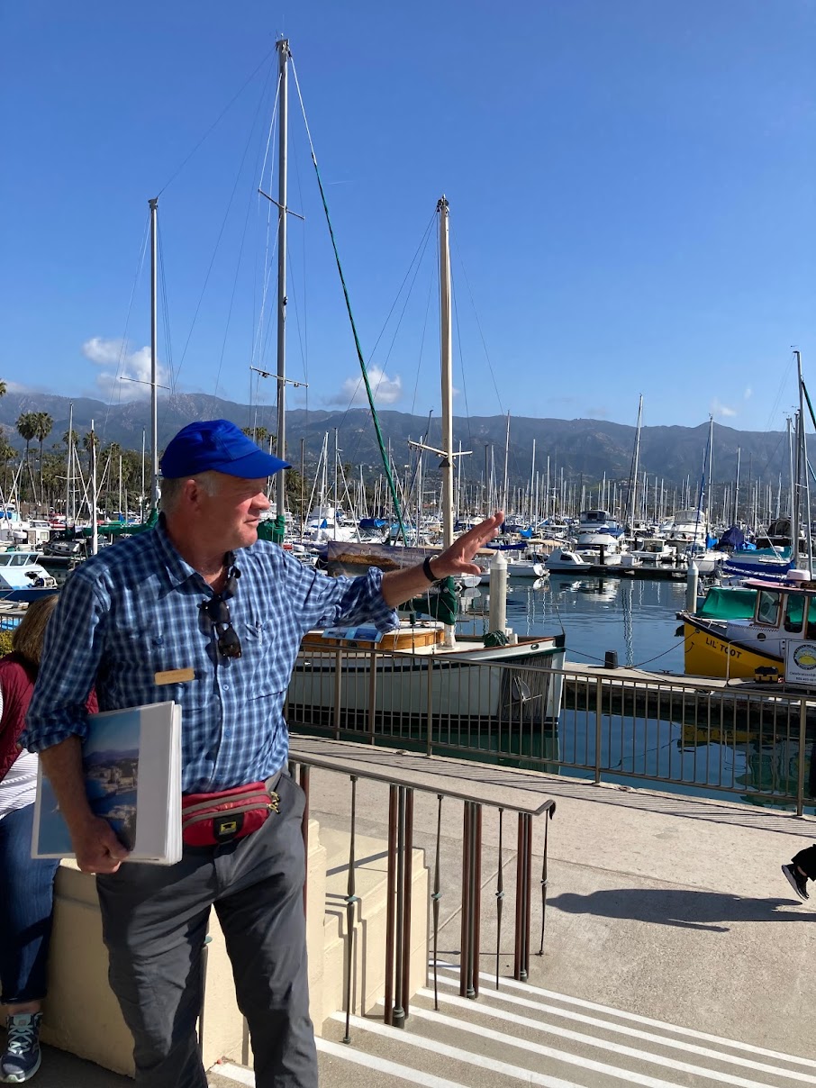 The tour starts on the steps of the Maritime Museum (113 Harbor Wy). We’ll cover such topics as the discovery of the Channel Islands, the construction of our harbor, early bath houses, Sambos Restaurant, Potter Hotel, Dolphin Fountain and Stearns Wharf, Moreton Bay Fig tree and so much more. 11 x 17 old photos help place you back in time.