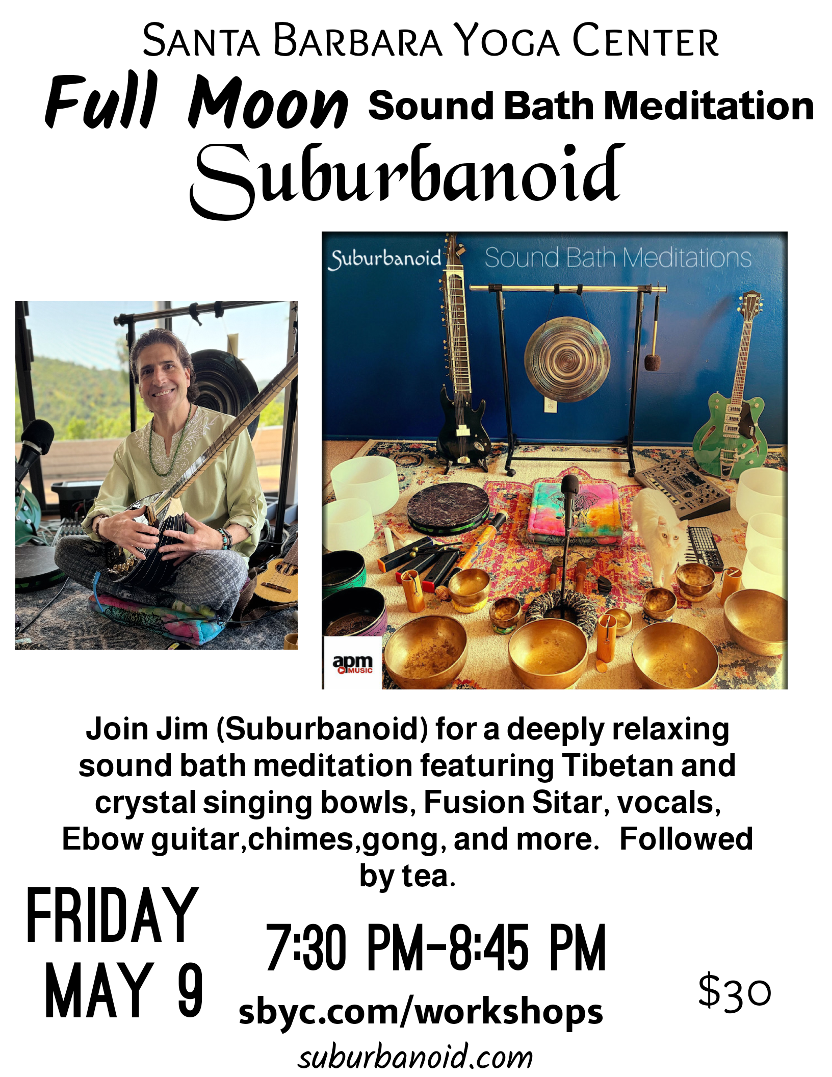 Suburbanoid Full Moon Sound Bath Meditation by candlelight at Santa Barbara Yoga Center
