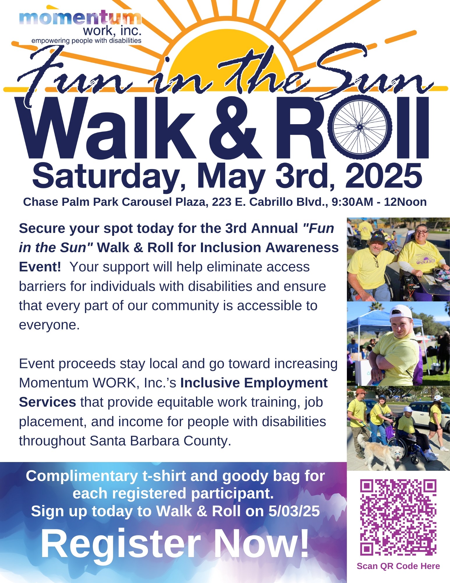 The “Fun in the Sun” Walk & Roll for Inclusion Awareness Event needs your support to help eliminate access barriers for individuals with disabilities and ensure that every part of our community is accessible to everyone.
