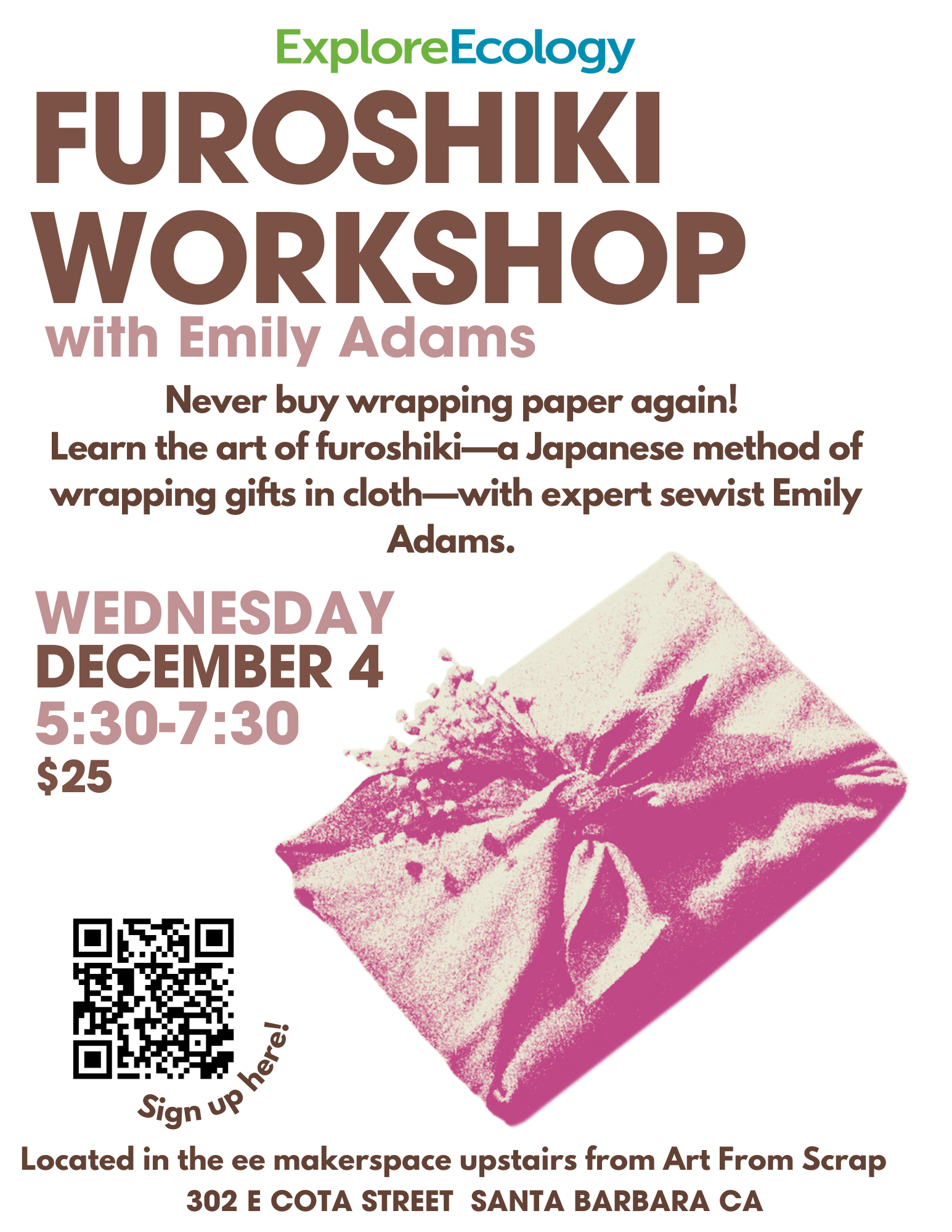 Embrace sustainable gift-giving this season with our Furoshiki Workshop, led by Emily Adams. Learn the art of Furoshiki, the traditional Japanese practice of wrapping gifts and items in cloth. It is beautiful, reusable, and an earth-friendly alternative to gift bags and wrapping paper – most of which are non-recyclable.