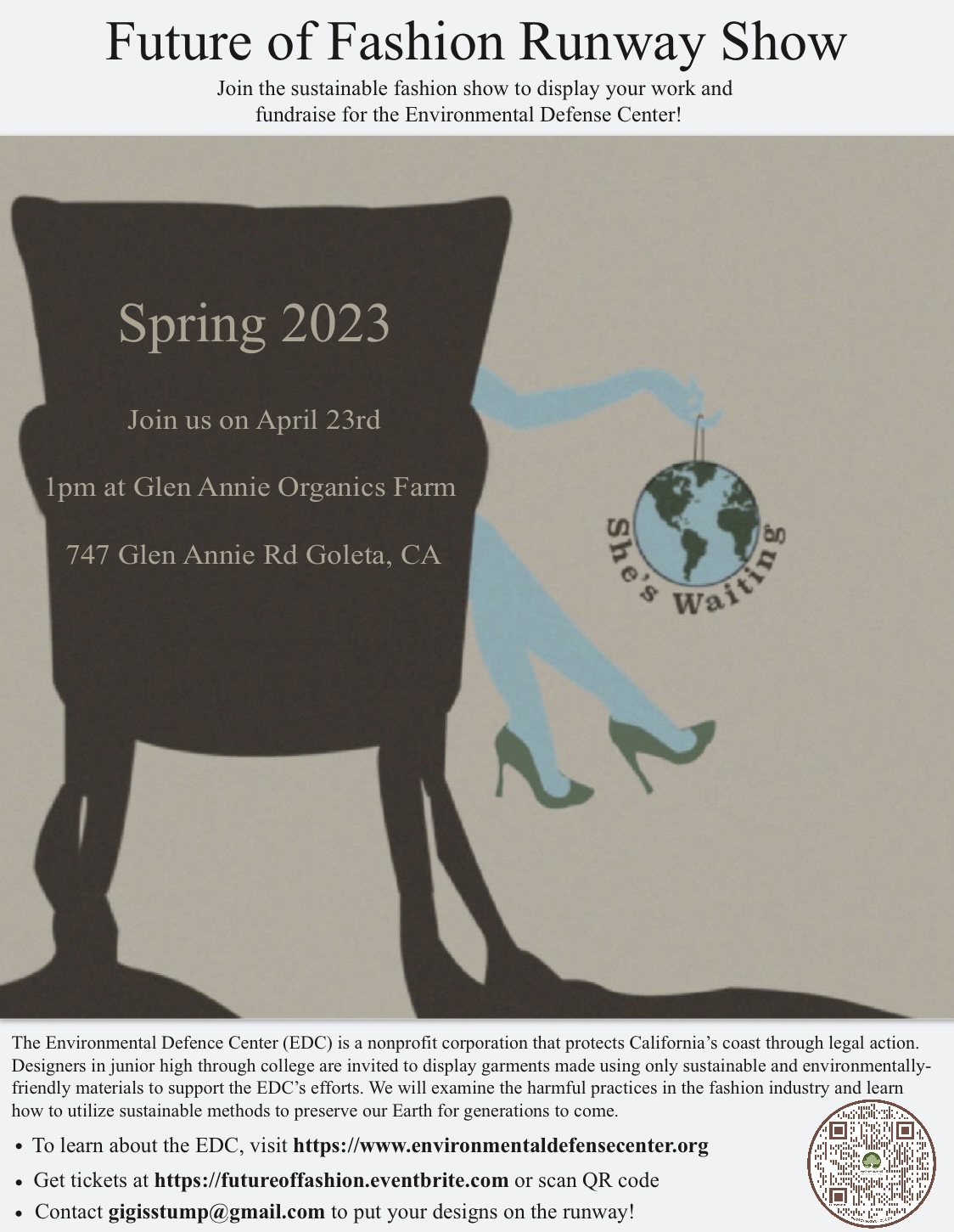 All profits from the Future of Fashion Runway Show will be donated to the Environmental Defense Center. This nonprofit corporation protects California’s coast through legal action.