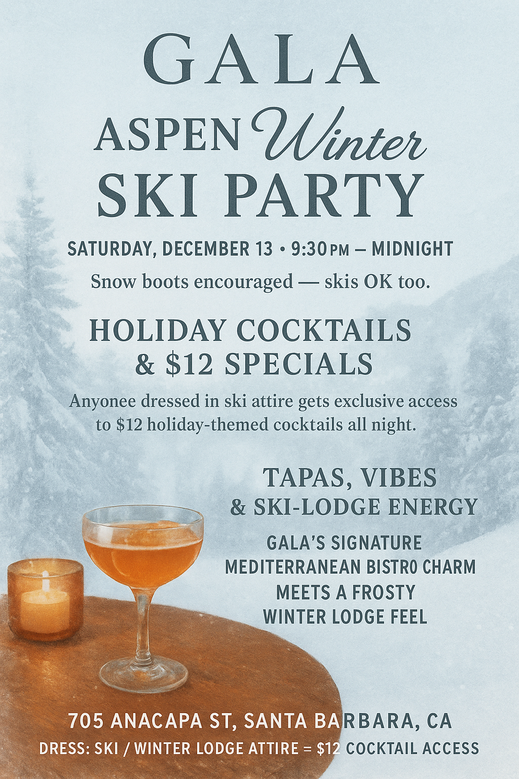 GALA’S SIGNATURE MEDITERRANEAN BISTRO CHARM MEETS A FROSTY WINTER LODGE FEEL