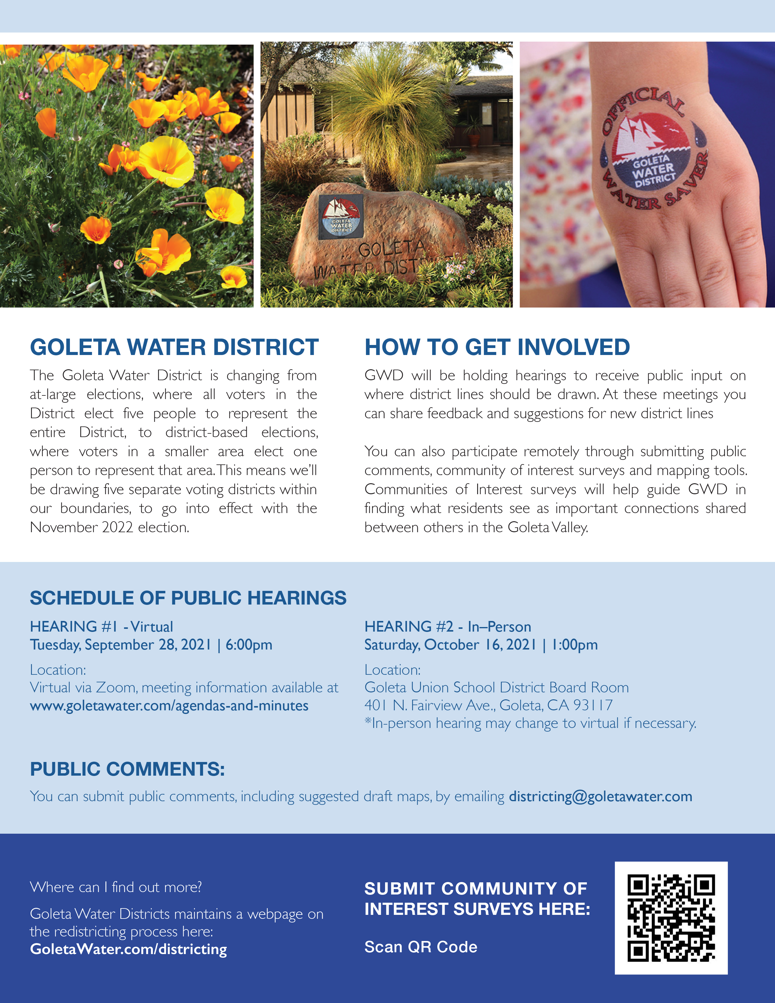 Make your voice heard at the Goleta Water District districting hearing on October 16th at 1:00pm.