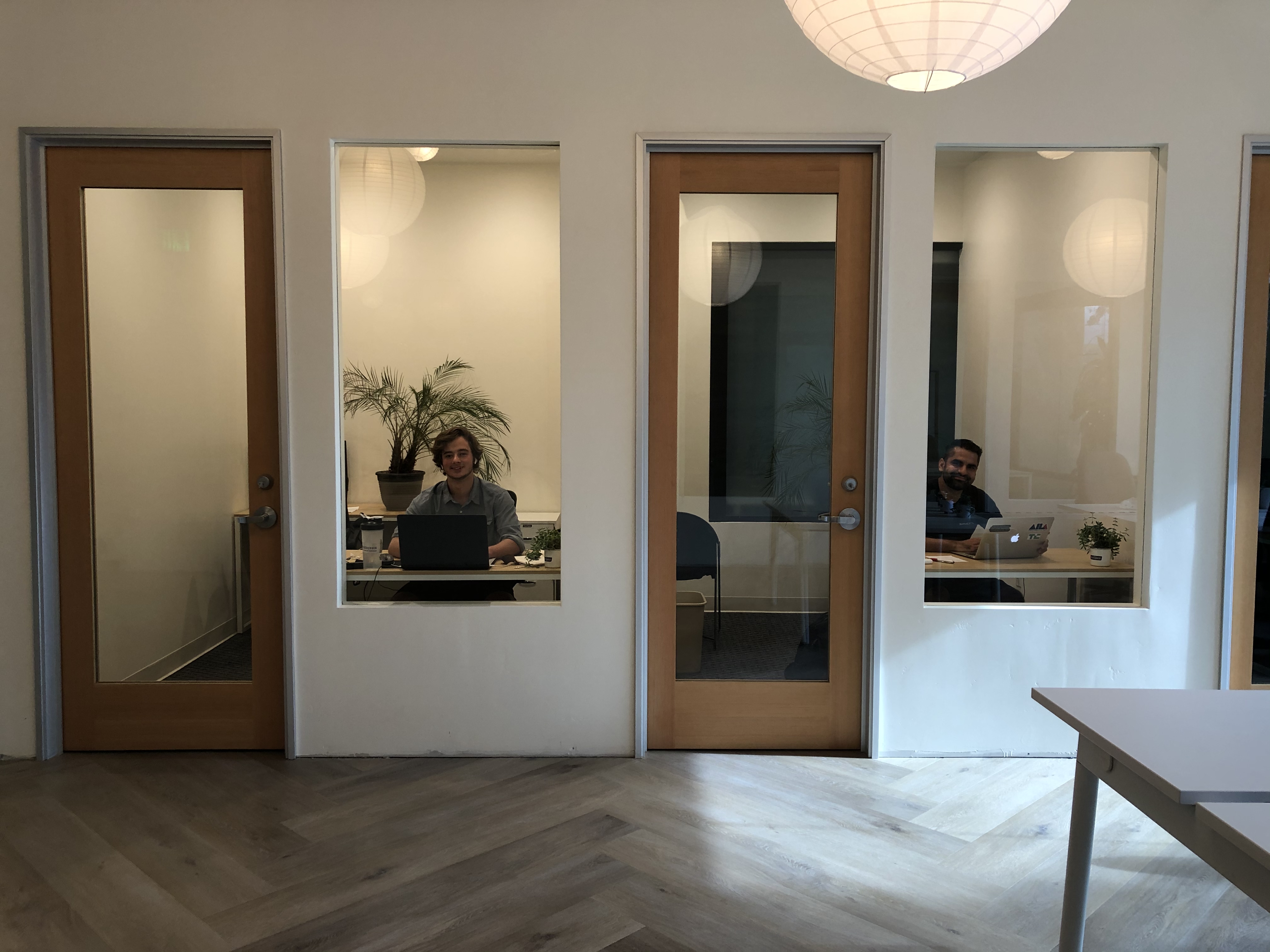 We have private offices with everything you need (furniture, great wifi, coffee) for daily, weekly and monthly rental. Use an office to record a webinar or take a zoom meeting.