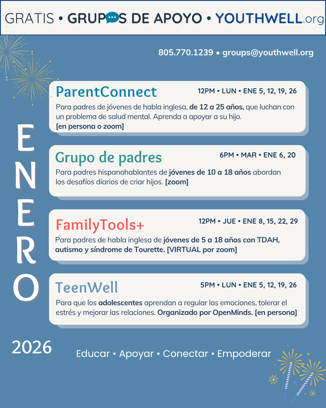 Support group for Spanish speaking parents of youth, ages 10-18, held weekly in-person in Santa Barbara.