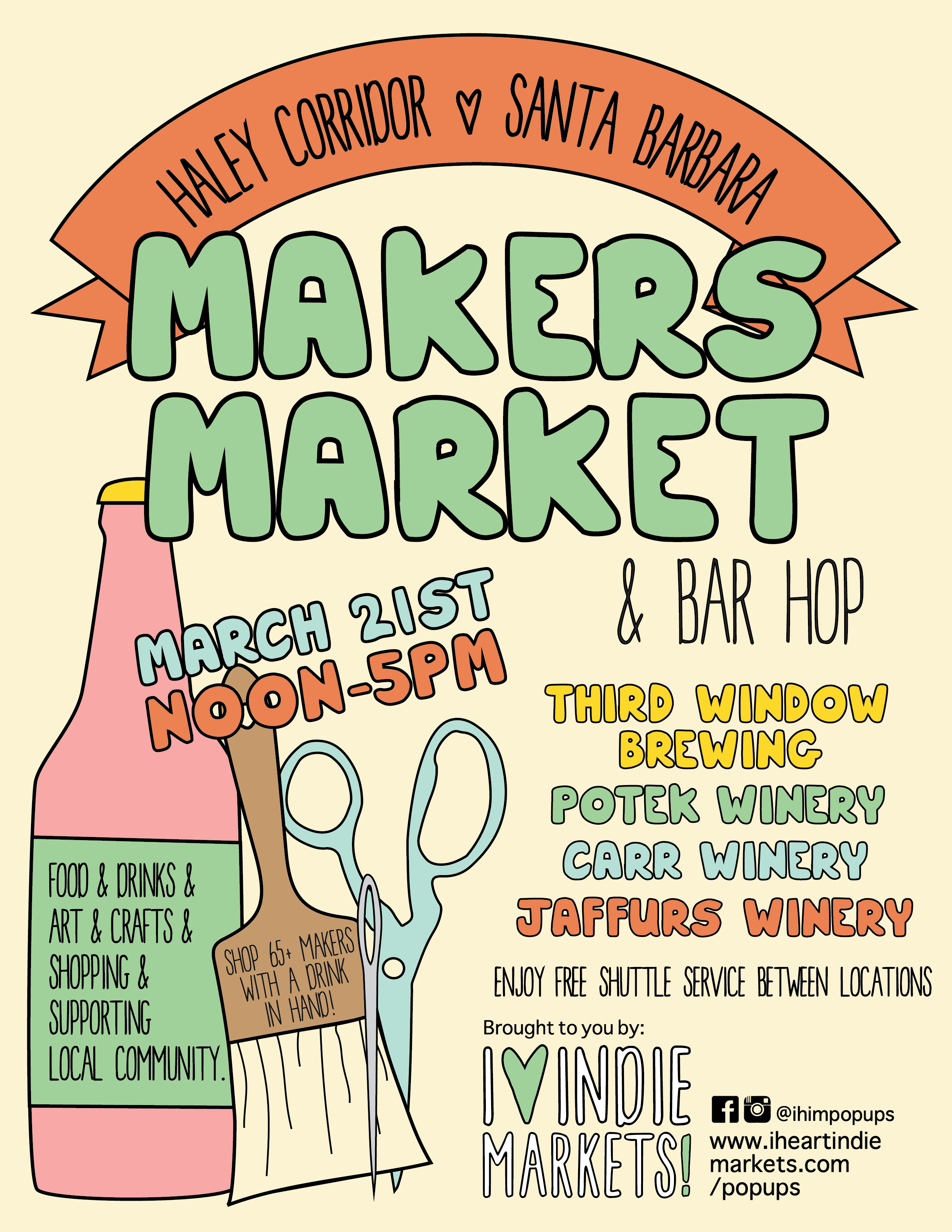 Join us in the Haley Corridor neighborhood of Santa Barbara on March 21 from noon to 5pm to shop 60+ makers with a drink in hand!
