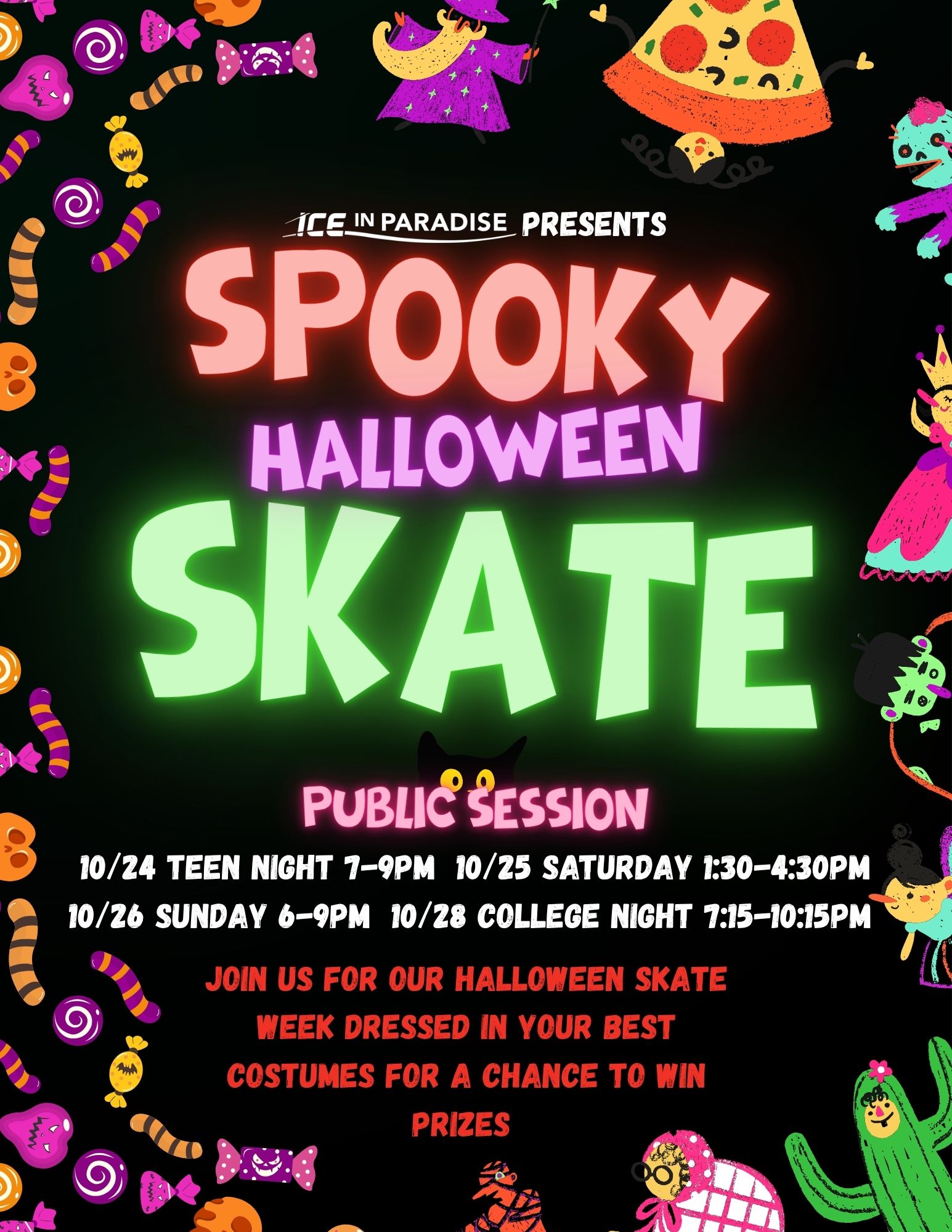 Join us at Ice in Paradise for our Spooky Halloween Skate public sessions! Come dressed in your best costume for a chance to win awesome prizes and enjoy a week full of festive fun on the ice!