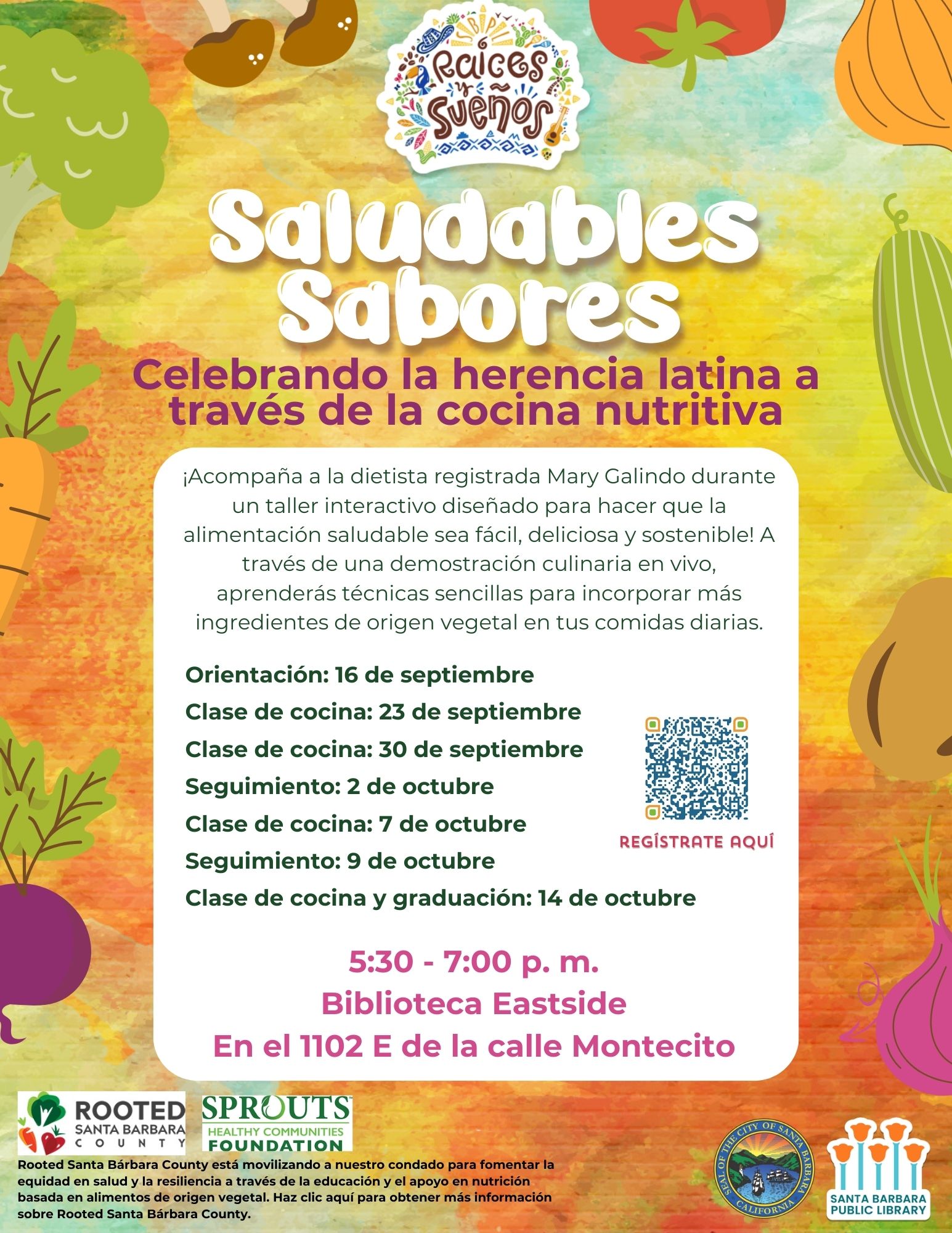 Rooted Santa Bárbara County está movilizando a nuestro condado para fomentar la equidad en salud y la resiliencia a través de la educación y el apoyo en nutrición basada en alimentos de origen vegetal. Haz clic aquí para obtener más información sobre Rooted Santa Bárbara County.