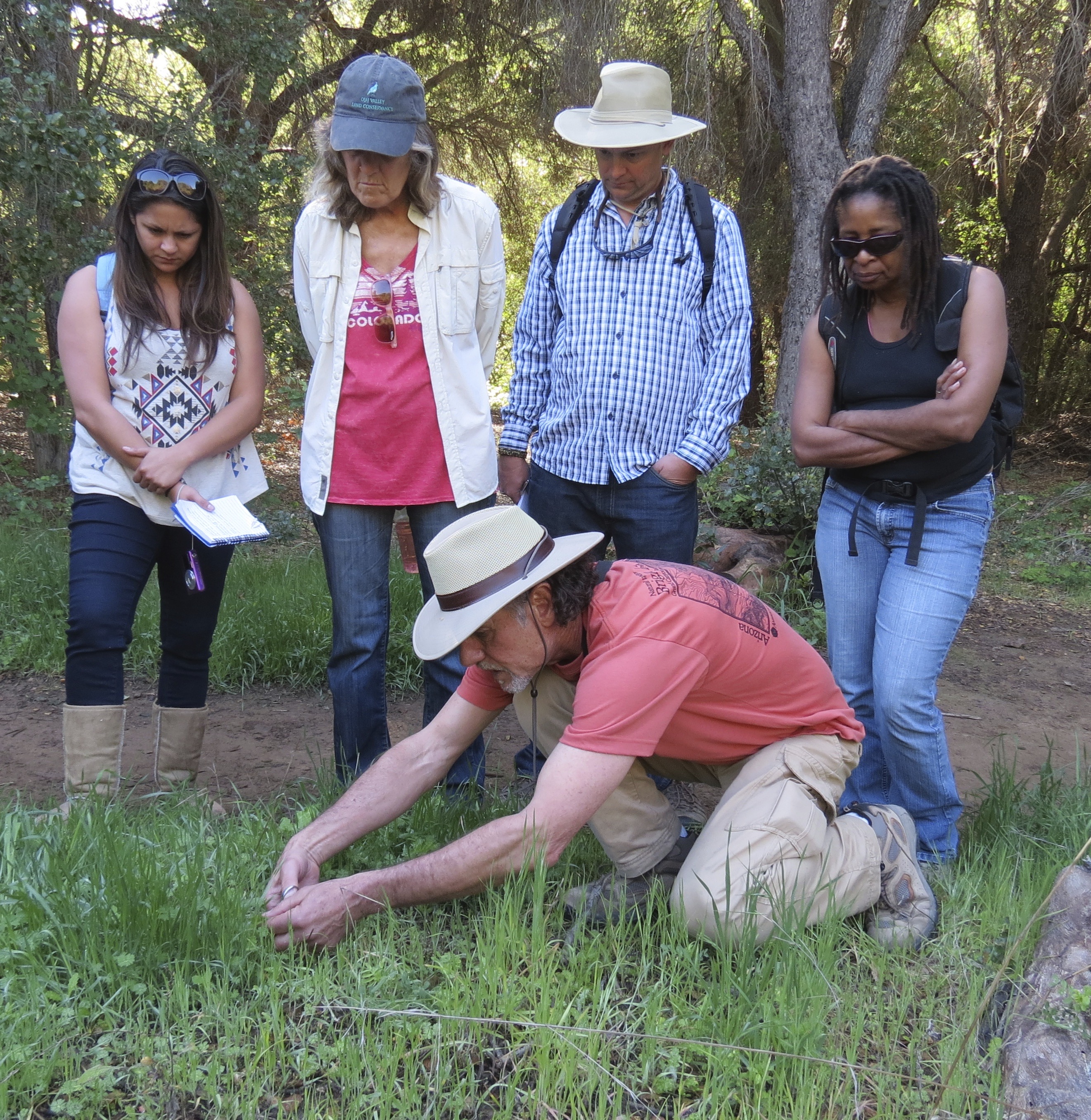 Photo of Kaufer leading an Herb Walk on San Antonio Creek Trail by James Wapotich