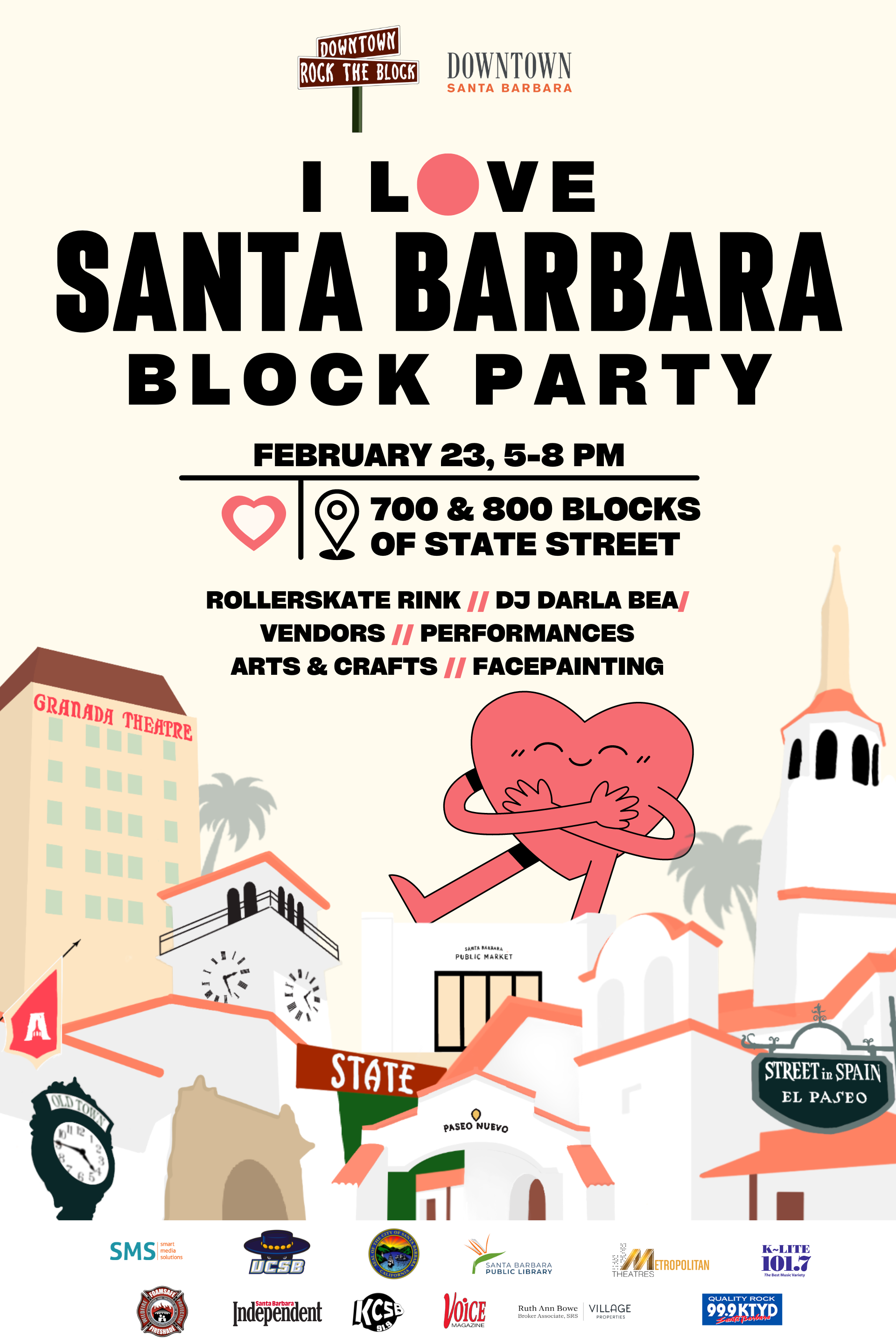 Join us as we celebrate all the things we love about downtown Santa Barbara. From dancing with DJ Darla Bea to roller skating, yoga, face painting, and games, to performances by Junior Spirit of Fiesta, Santa Barbara High School’s Cheer, and World Dance for Humanity, to opportunities to learn about & connect with beloved Santa Barbara organizations including Healing Justice, our local Earth Day organizers, Heal the Ocean, Santa Barbara Humane and more, this evening is sure to be fun for the whole family. Mark your calendars & don’t miss out on this unforgettable community event. We can’t wait to see you there and celebrate Santa Barbara with you!
