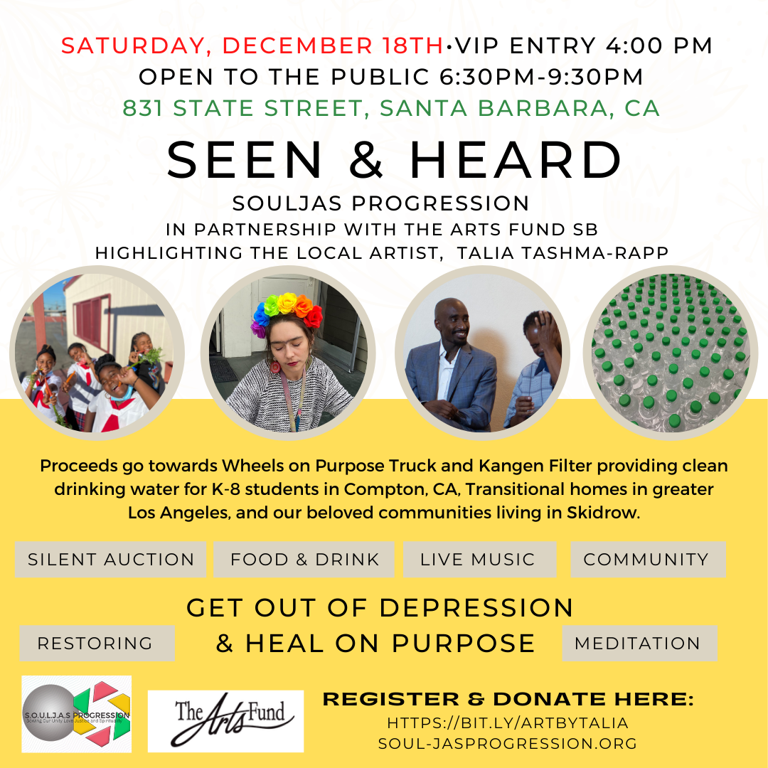 Proceeds from SEEN & HEARD will go towards our Wheels On Purpose Truck and Kangen Water Filter, which will be used for the various community programs that serve the formerly incarcerated, those who are unhoused, and adults and children living in low-income and underserved communities.
