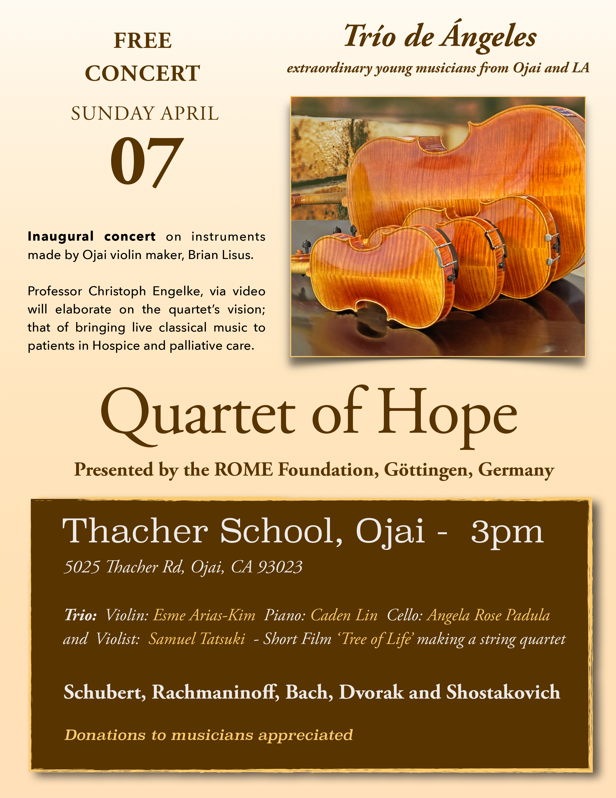 Inaugural concert on instruments made by renowned Ojai violin maker, Brian Lisus.